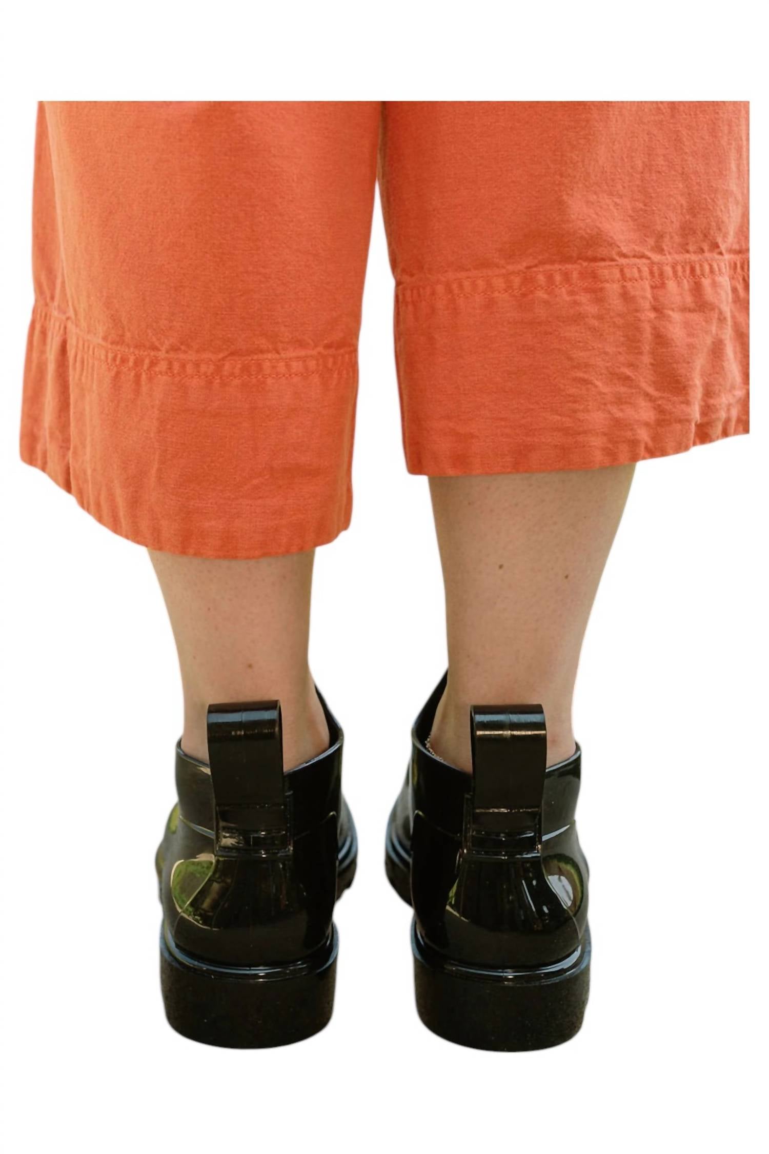 Step out in style with the High Street Rain Boot by Free People, expertly crafted for unrivaled moisture protection. These sleek black booties boast a low-ankle length and are made entirely from PVC, ensuring you stay dry in rain or snow. The chic, chunky sole with toothed outsoles provides excellent grip, while the pull tabs offer easy wear. With their classic yet sophisticated silhouette, they're the perfect blend of fashion and function for any inclement weather.