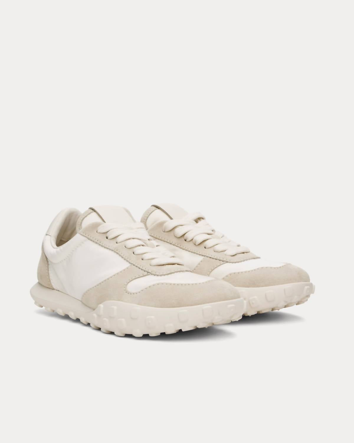 Step into the summer season with the Jil Sander Women's Vapour Low Top Shiny Sneakers, a perfect blend of style and comfort for athleisure enthusiasts. These women's sneakers feature a front lace-up closure and a round toe design, crafted in a chic white tech fabric and light grey suede combination. Composition consists of 100% polyester and 100% calf leather, with a durable 100% rubber sole. Ideal for fitness or workout occasions, these flat heel sneakers promise a comfortable fit and fashionable flair.