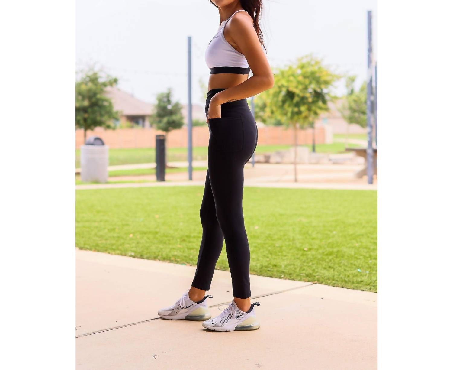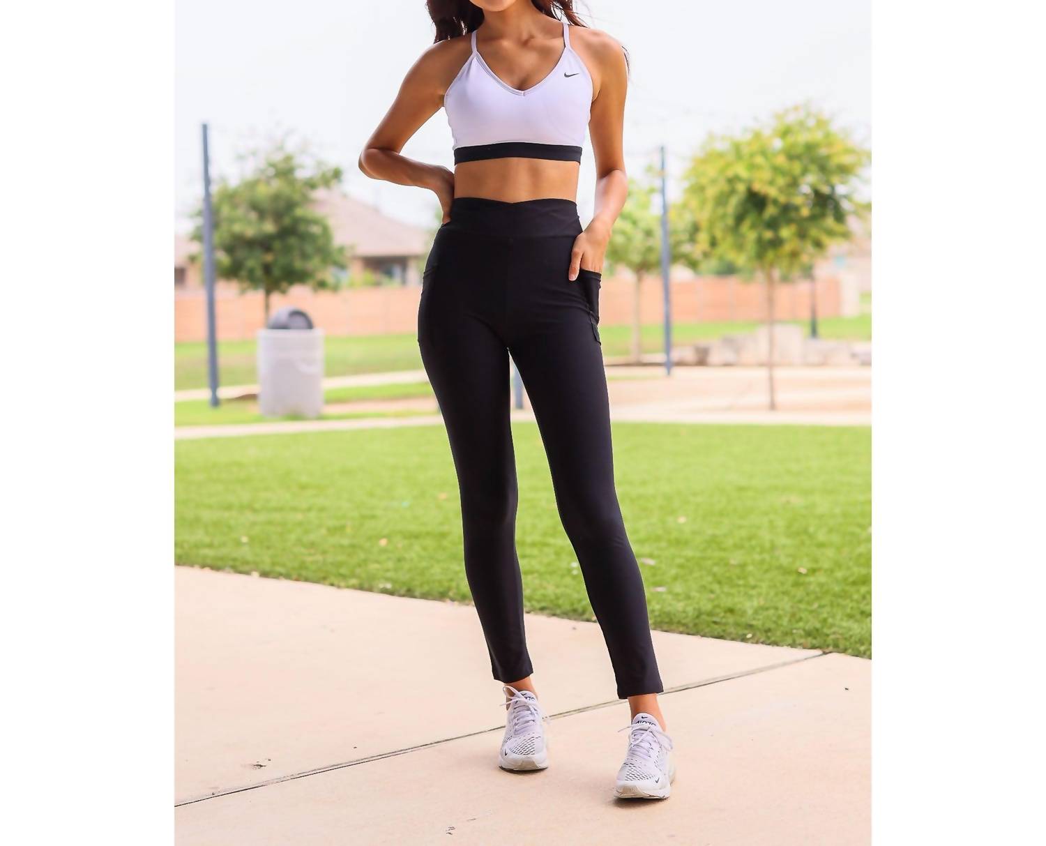 Introducing the Chloe Crossover Pocket 7/8th Ankle Length Leggings by Julia Rose, designed for the modern woman seeking style and comfort. These slim-fit, high-rise leggings are crafted from 92% polyester and 8% spandex, featuring a pull-on closure for easy wear. With convenient pockets and a solid black pattern, these leggings perfectly hug your curves. Available in various sizes, they have an inseam of approximately 25 inches.