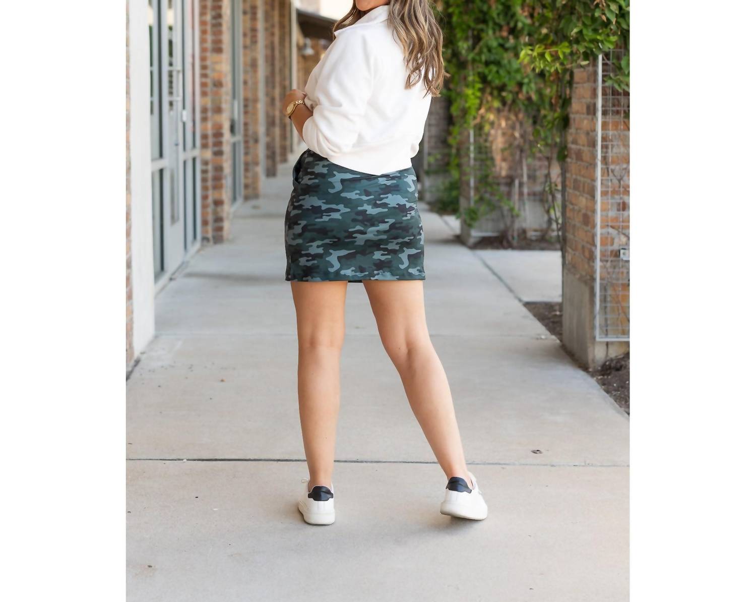 Unveil your playful side with the Kai Jogger Skirt by Julia Rose, a stylish Camo piece ready to elevate your wardrobe. This mini skirt is made from a blend of 92% Polyester and 8% Spandex, providing a comfortable fit. It features a convenient tie closure and handy pockets, perfect for casual days or vacation wear. With a 16-inch length, it's a trend-forward choice for those who love a maximalist style. Sizing options: S/M (4-10), L/XL (12-18), 2XL/3XL (20-28).