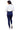 These navy leggings, made from 92% polyester and 8% spandex, offer a high-rise, comfort fit with a skinny leg design and practical pockets. Featuring a pull-on closure and an inseam of approximately 27.95 inches, they are available in sizes OS to TC2.