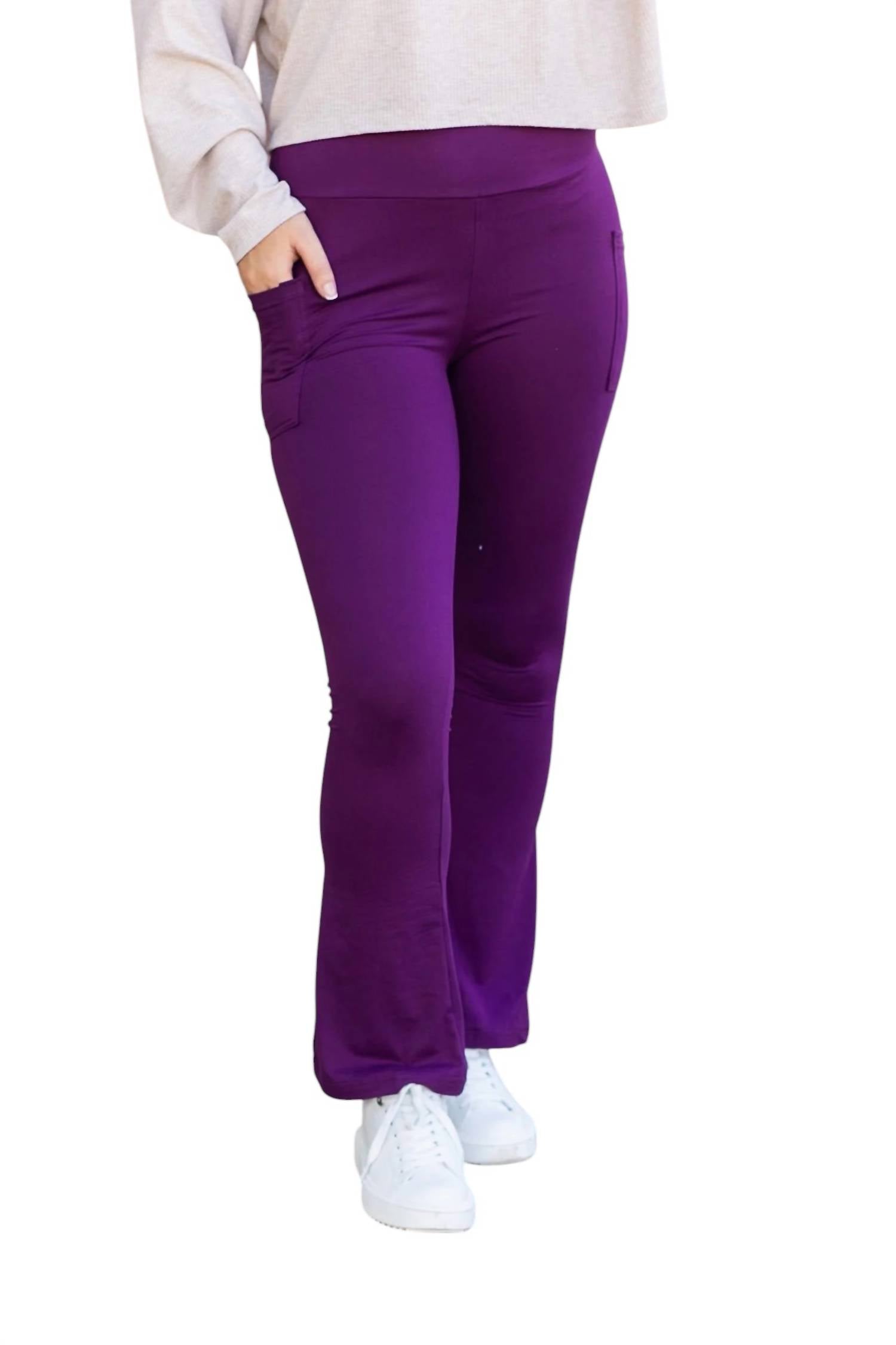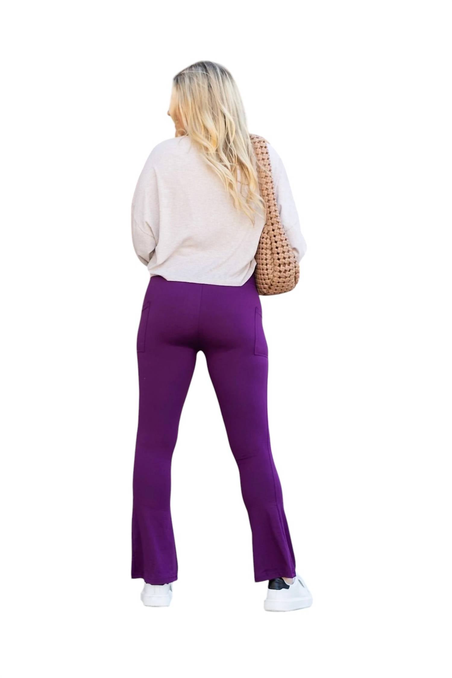 Introducing the Reese Flare Leggings. Designed for versatility and comfort, these leggings offer a flared leg style with a high-rise waist, ensuring a flattering silhouette for any activity. Made from 92% polyester and 8% spandex, they provide a snug yet flexible fit, perfect for everything from yoga to everyday errands. With a pull-on closure for ease and an approximate inseam of 27.56 inches, these solid-patterned, pocket-equipped leggings are a must-have for your activewear collection.