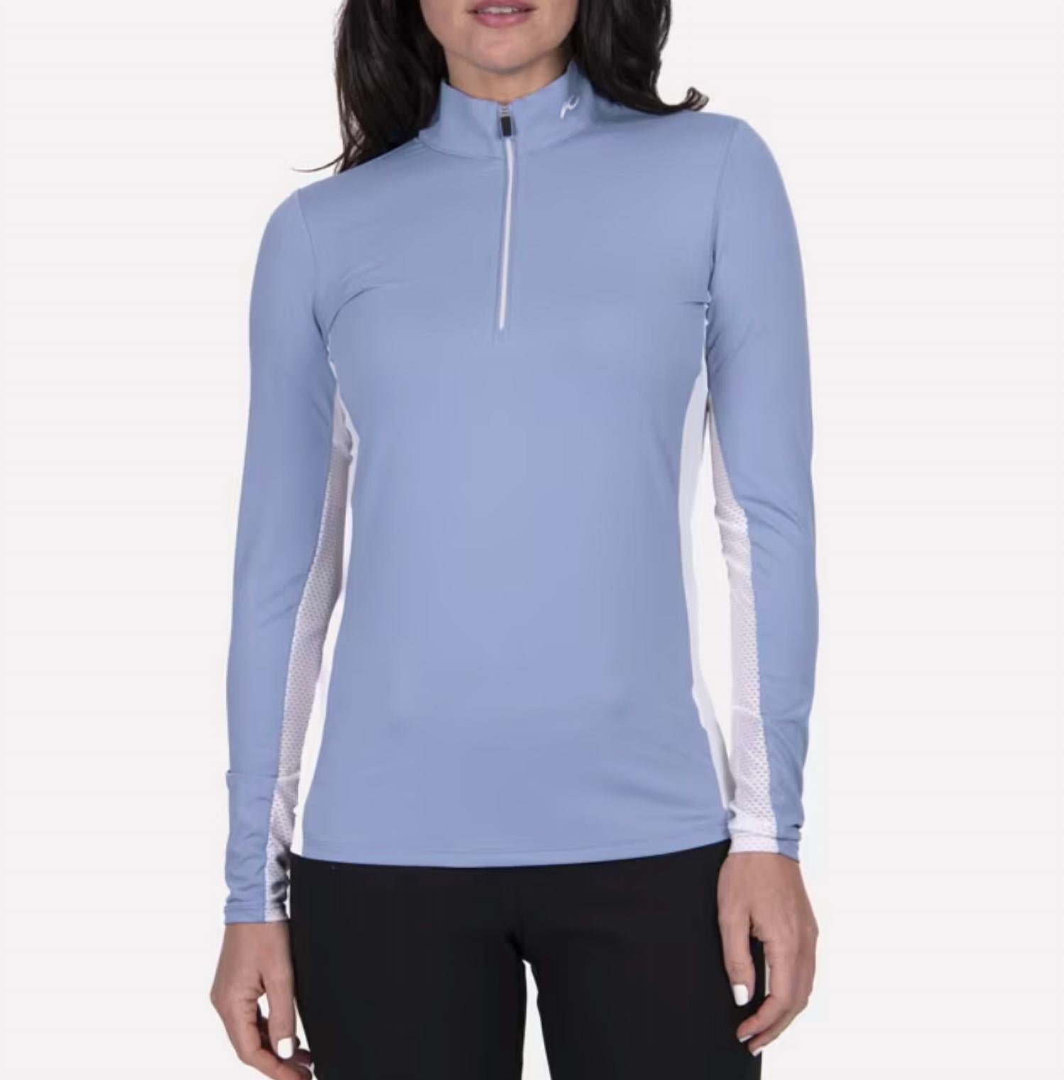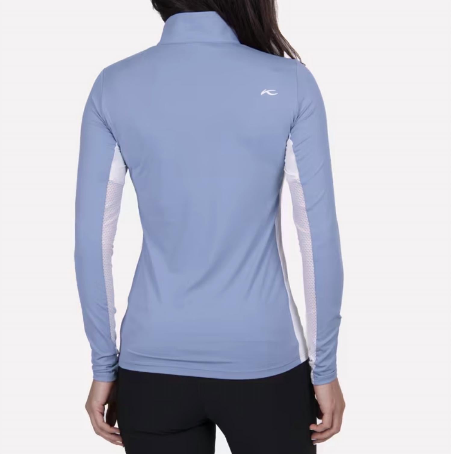 Great fit, cute design, soft fabric. You'll love everything about this long sleeve tee. The KJUS Sunshine Sport Half-Zip Top in Santorini/white provides ultimate sun protection with its long sleeves and solid pattern. Crafted from polyester, this lightweight women's activewear piece features a mock neckline and a sporty fit, enhanced by an Aurolite YKK zipper closure. With mesh inserts for ventilation and ergonomic design, it’s perfect for summer fitness and workout sessions. Care for your top easily with machine washing and tumble drying.