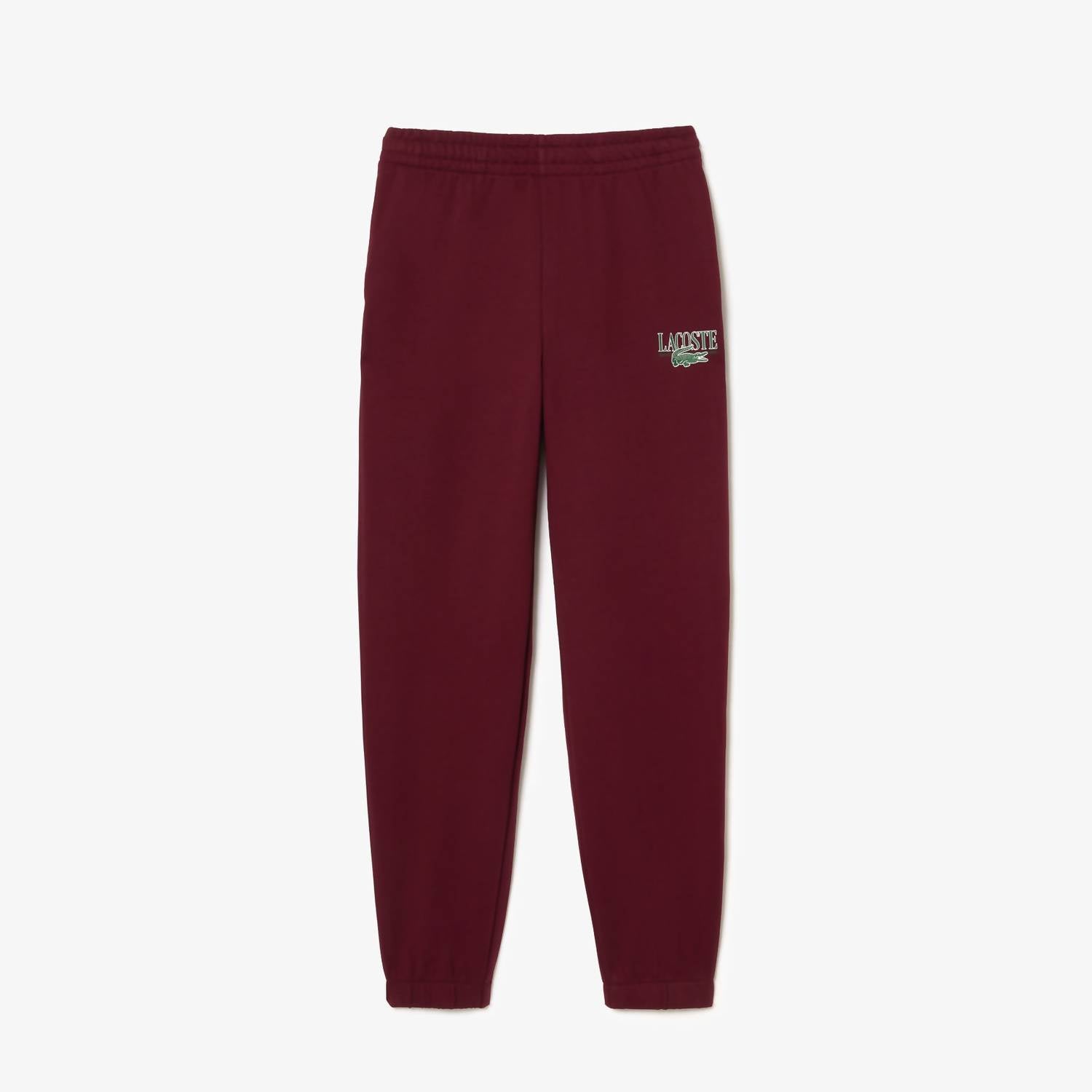Introducing the Women's Logo Printed Sweatpants by Lacoste, a perfect blend of comfort and style in vibrant red. Crafted from a super soft cotton blend with a drawstring waist, these sweatpants offer a relaxed fit with straight legs for maximum ease of movement. The pull-on closure is simple and practical, while the embroidered crocodile and logo branding on the front add a distinctive touch. Ideal for active days or lounging, these joggers are a must-have for any wardrobe.