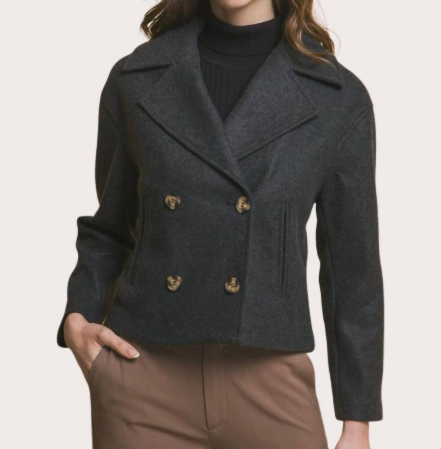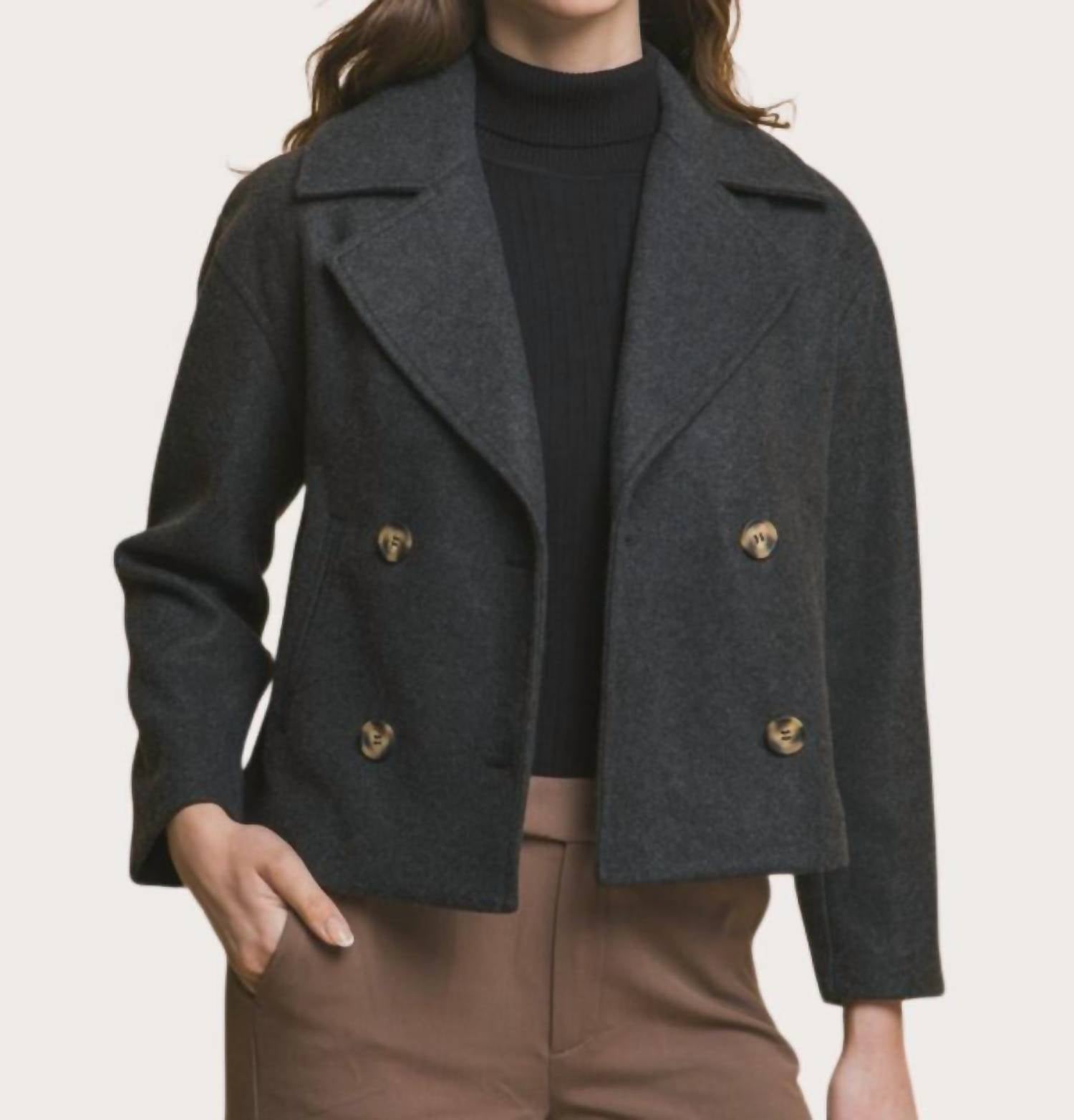 A casual yet cool jacket that every closset needs. Step into the spotlight with the Double Breasted Wool Jacket by LOVE TREE, a chic addition for your wardrobe. This jacket features long sleeves and a collar neckline, paired with a textured pattern that adds an edge to its style. Crafted from premium wool, it offers both warmth and durability, ensuring you're cozy and fashionable. The button closure and handy pockets complete this standout piece in classic black.