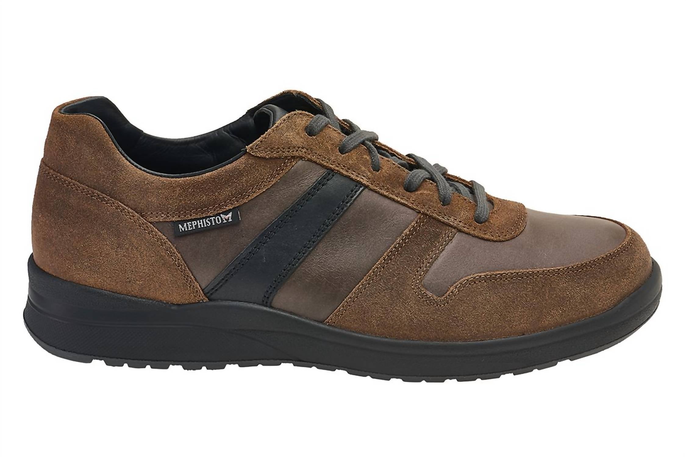 Experience unparalleled comfort with the Men's Vito Sneaker by Mephisto, crafted in hazelnut nubuck leather. These men's sneakers feature a removable anatomical foam insole enhanced by soft-air technology, ensuring lasting comfort and support. The sole is composed of 100% natural rubber, effectively absorbing shocks to protect the waist, knees, and ankles. Designed with a flat heel and round toe, these sneakers are perfect for all-day wear.