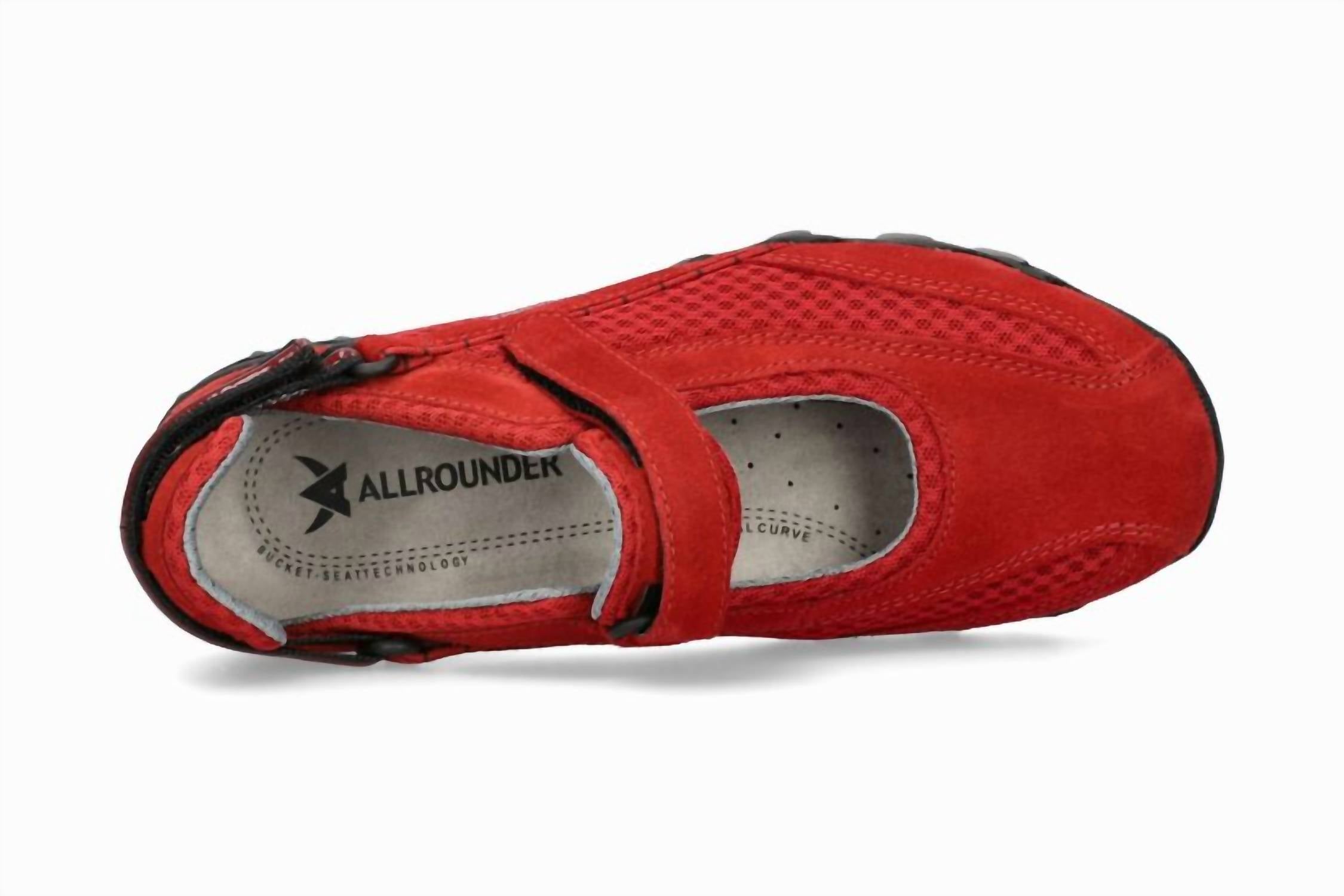 Meet the Women's Niro Rugged Mary Jane Shoes by MEPHISTO, an innovative blend of style and functionality in a striking Chili Pepper Red. Crafted from luxurious velvet leather with a textile lining, these sneakers feature a flat heel measuring 1.5 cm for all-day comfort. The single adjustable hook and loop strap provides effortless on-and-off functionality and a secure fit. Ideal for varied occasions, they include a removable footbed and a grippy outsole, promising both comfort and stability.