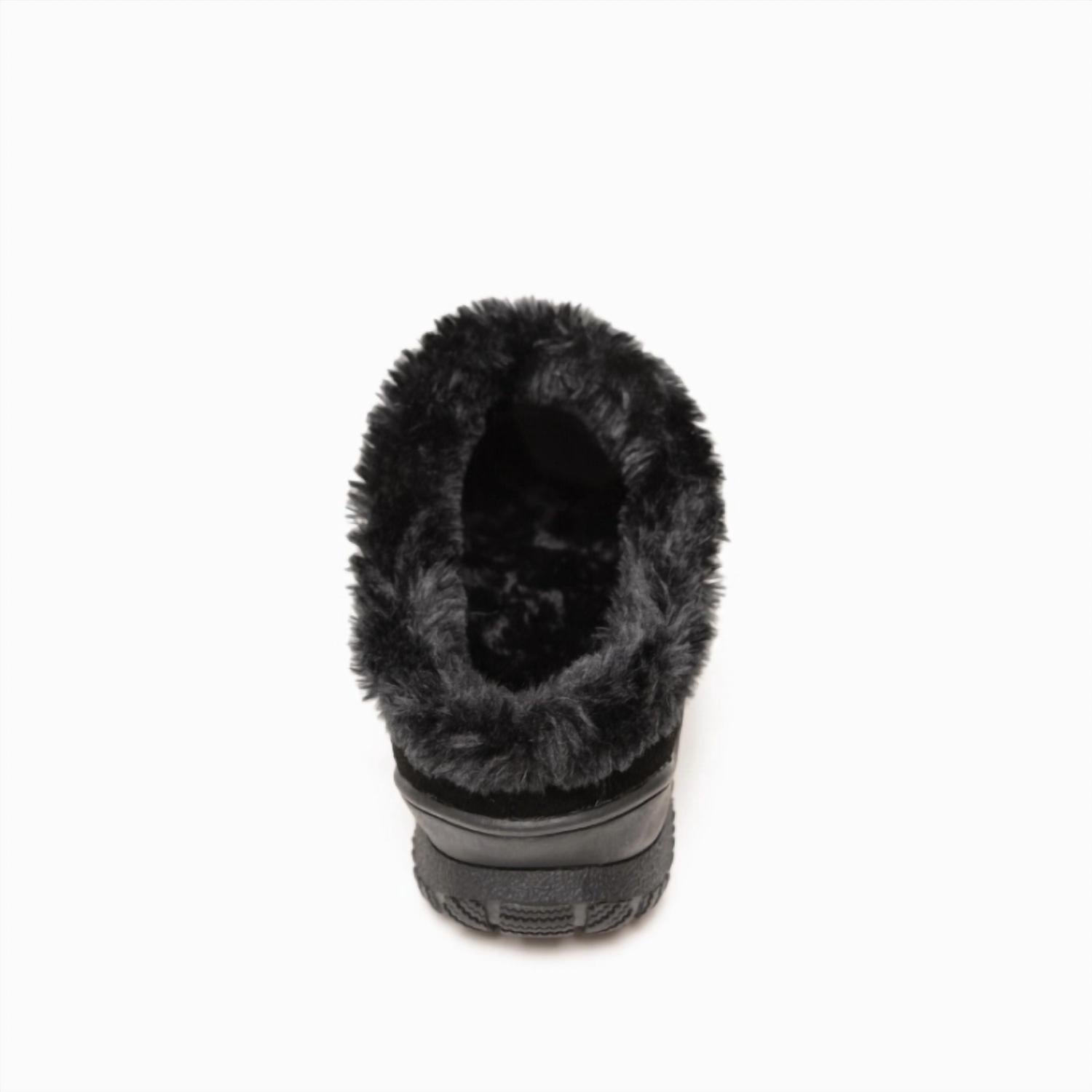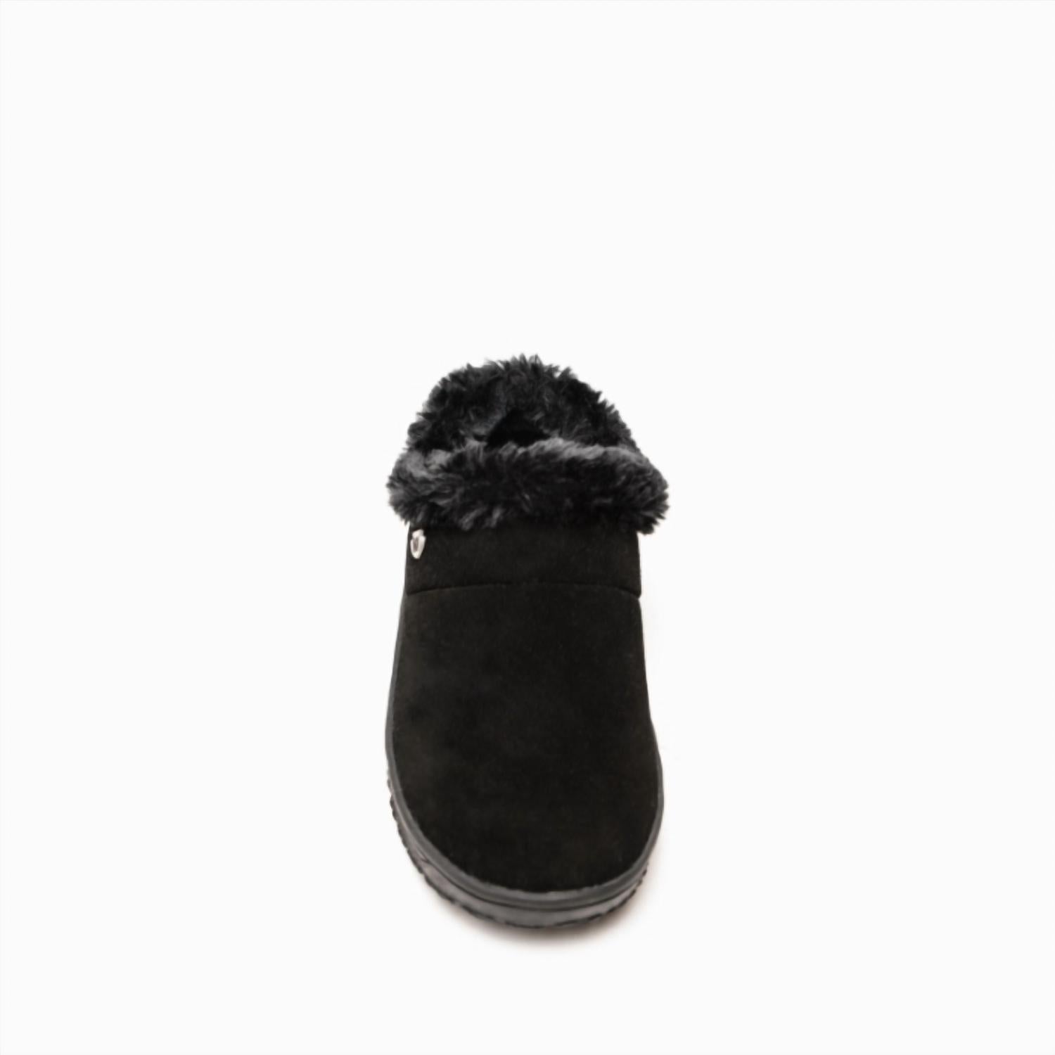 Say hello to the perfect, most versatile boot. The ankle height makes this style easily transition from day to night. Wear them with your favorite skinny jeans and tee for a more laid back look, or pair them with your favorite mini dress and jacket for a night out on the town. Step into ultimate comfort and style with the Women's Emerson Boot by Minnetonka. Part of the Home & Away collection, these black ankle boots boast a suede exterior enhanced with MinnShield for exceptional water and stain resistance. The fluffy interior lining ensures warmth and support, while the thick, heavily-treaded sole delivers durable comfort for diverse terrains. These flat-heeled, round-toe boots are the perfect blend of indoor coziness and outdoor readiness.