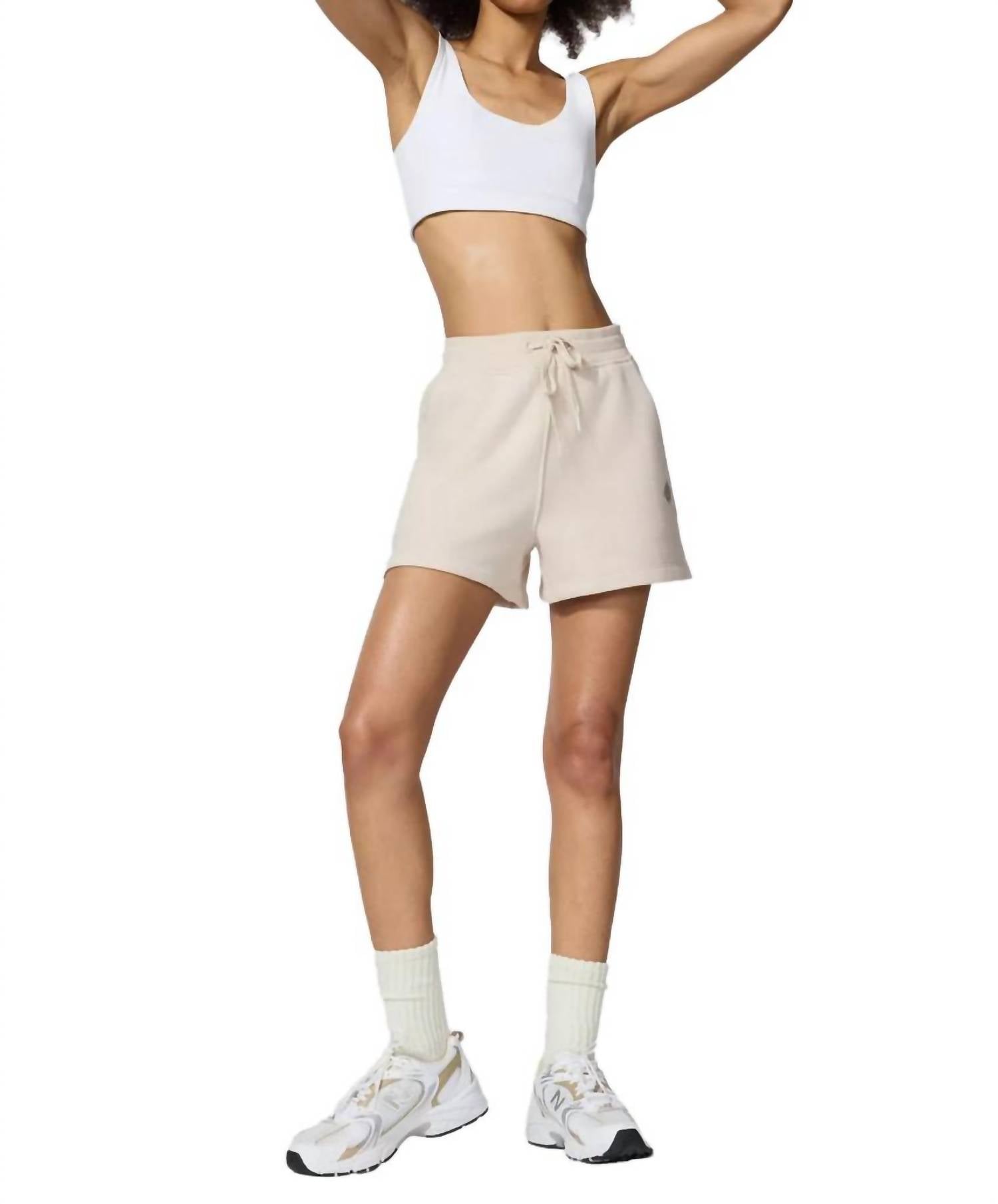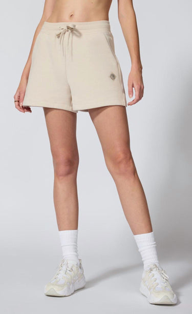 Experience ultimate comfort with the Women's Comfort Short by MPG Sport, designed in a chic stone hue. Crafted from an ultra-cozy organic cotton and recycled polyester fleece(72% Organic Cotton, 28% Recycled Polyester), this high-waist short features a flattering 3.5-inch inseam. Enjoy the practical design with a cinchable tie closure, side and hidden cell phone pockets, and rib detailing at the side body and waistband. Easy to care for, just machine wash and tumble dry, making it an ideal choice for minimalist summer styles and vacation-ready looks.
