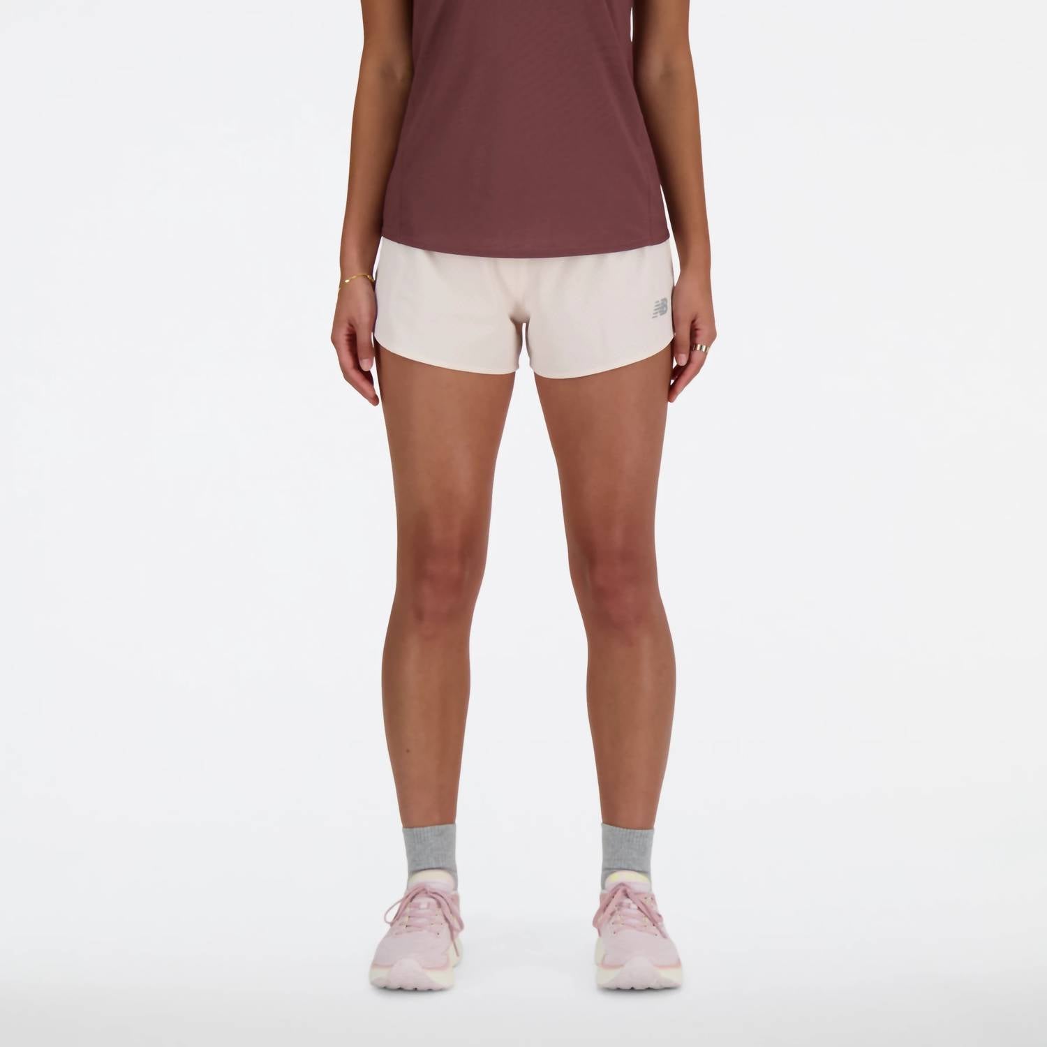 Elevate your workout with the Women's RC Mid Rise Short by New Balance, designed for performance and style in Peach Blossom. These athletic shorts feature a quick-drying polywoven material, perfect for intense workouts, with reflective details for added visibility. The pull-on closure and elastic waistband with an adjustable drawstring ensure a secure fit, while the internal brief with seamless construction offers comfort with fewer distractions. Care: Hand wash, line dry. Enjoy the practicality of an external back zippered pocket and two internal drop-in pockets for your essentials. Inseam: 3 inches. Imported.