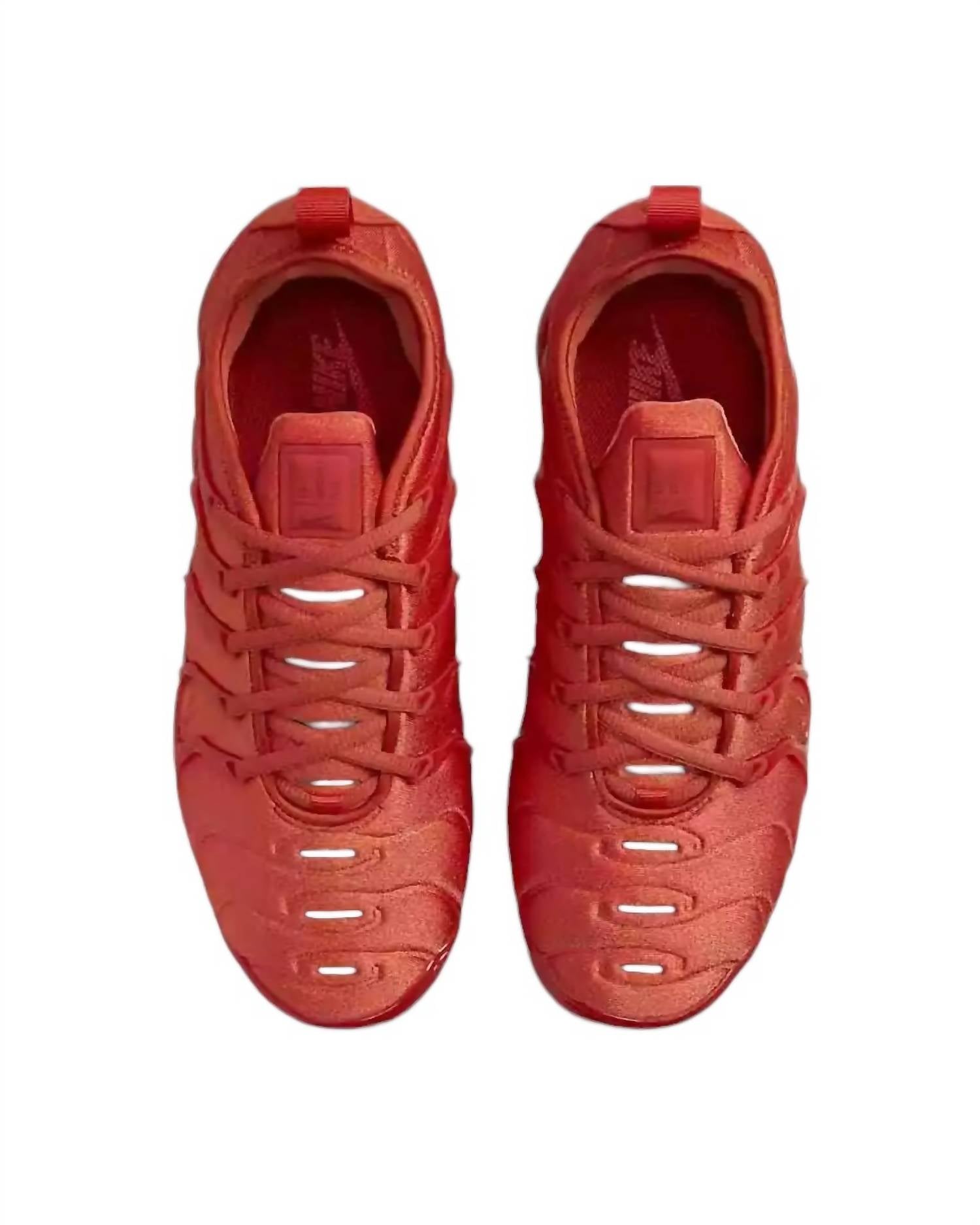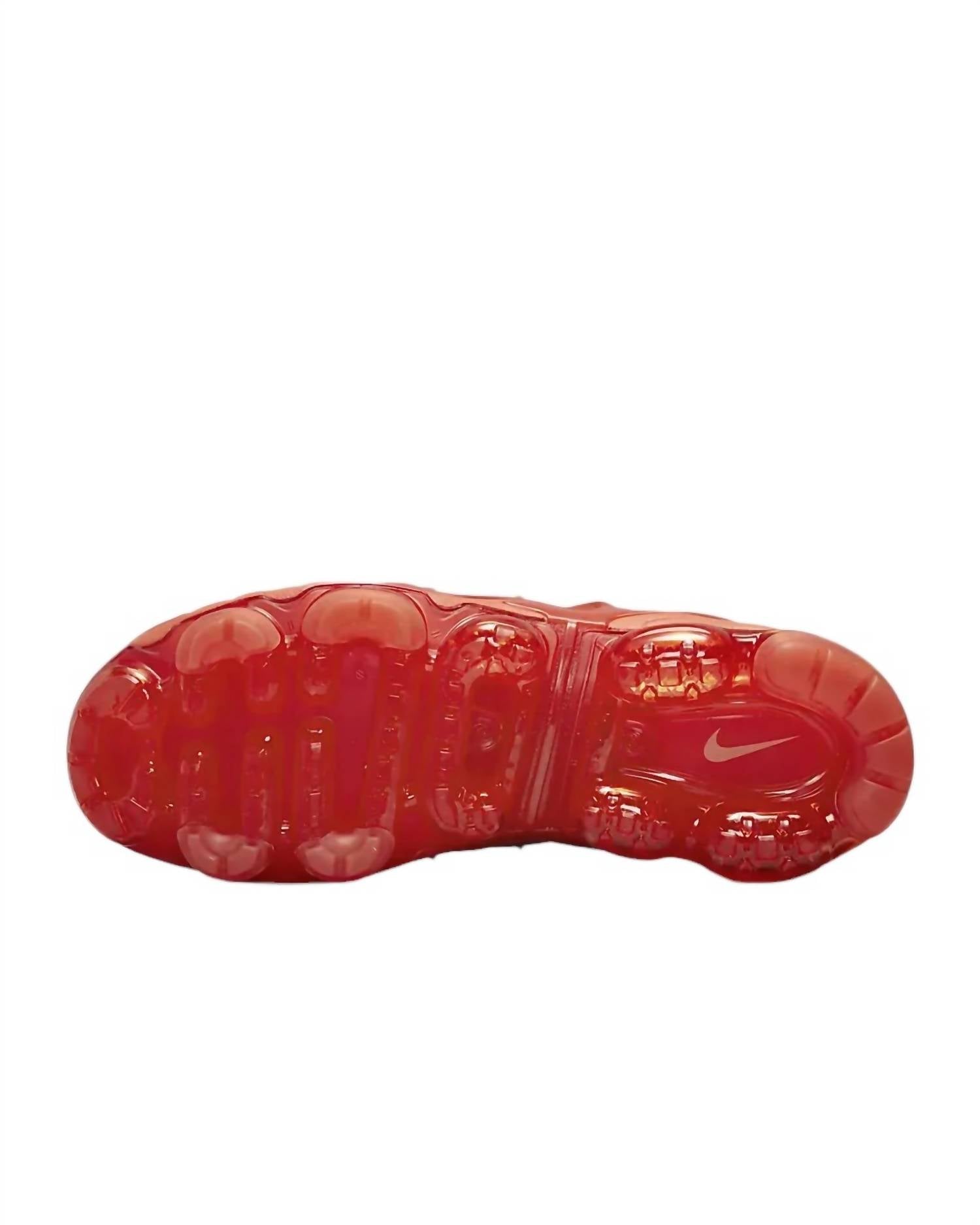 The Nike Air VaporMax Plus Triple Red delivers cushioning, comfort, and style with its full-length VaporMax sole and signature "VM" branding on the heels and insoles. The shoe features TPU overlays on the midfoot and a neoprene mesh upper, all draped in vibrant red. Its well-padded upper enhances the VaporMax Air midsole for added comfort. 100% Authentic.
