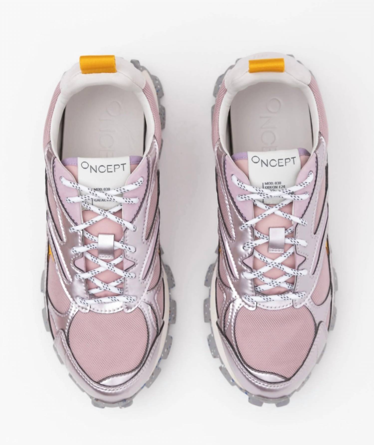Step into the future with the Women's Oslo Sneakers by Oncept, where innovative design meets comfort in Galactic Lilac. These trainers feature a recycled ballistic nylon construction and a unique spiral lace system for a sleek, durable finish. Crafted with a round toe and flat heel, they are perfect for navigating both city streets and everyday life. Enjoy Oncept's renowned quality in every step with these cutting-edge sneakers.