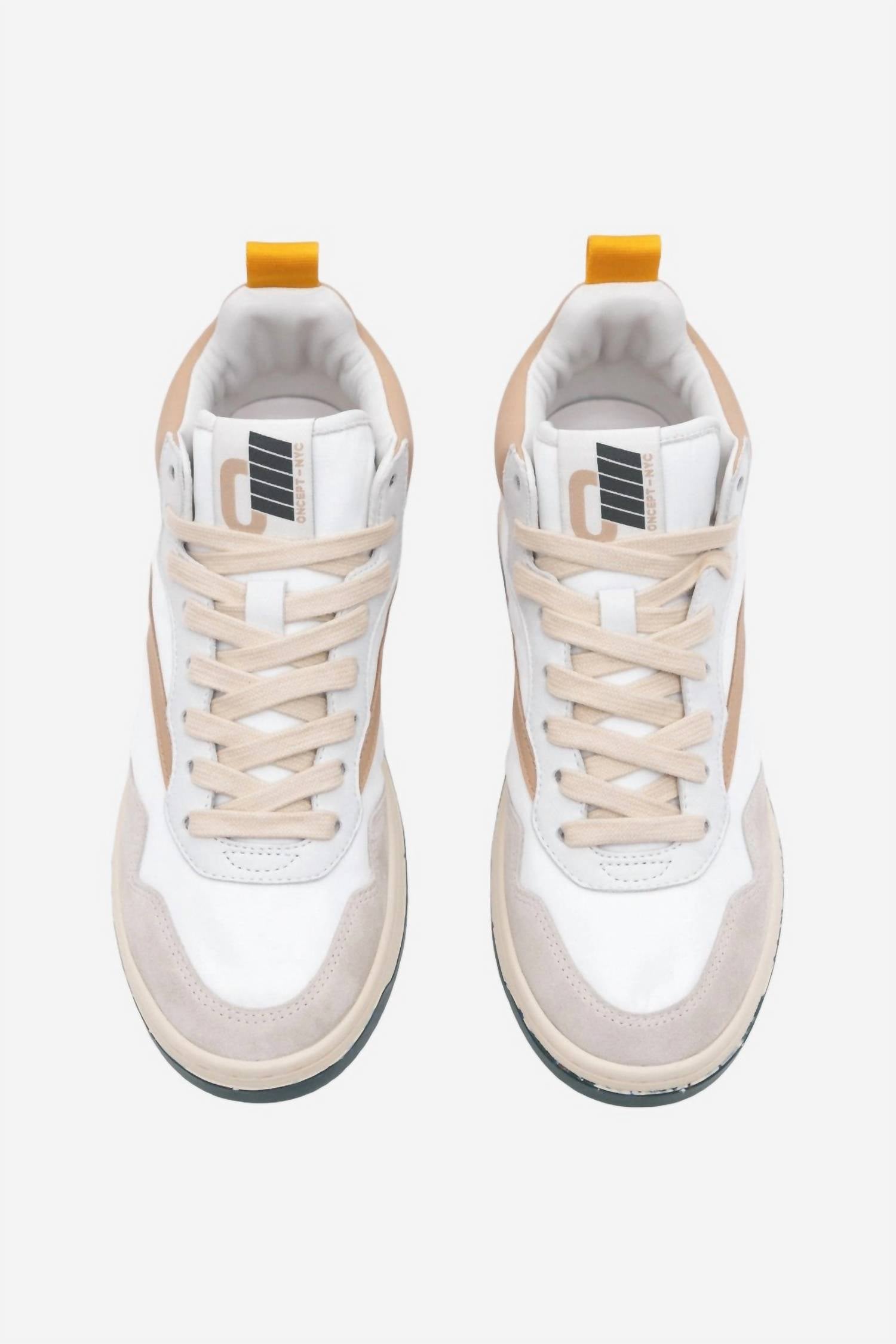 Step into effortless style with the Women's Princeton Mid-Top Sneakers by Oncept—a perfect blend of courtside cool and streetwise edge in an elegant Oak hue. Thoughtfully designed for the eco-conscious woman, these mid-tops are made from recycled nylon and accented with chrome-free suede for a touch of luxe. Inside, a breathable Tencel twill lining offers all-day comfort, while the two-tone recycled rubber soles and organic cotton laces deliver standout, sustainable style. Finished with a genuine leather sock and recycled insole boards, these sneakers are as kind to your feet as they are to the planet. A chic, conscious staple for any modern wardrobe.
