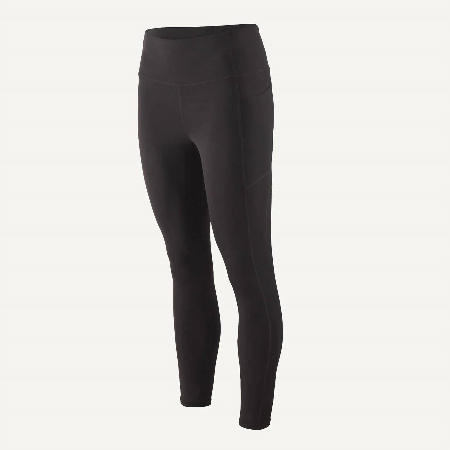 You'll be reaching for this best-selling legging all season long. Introducing the Patagonia Women's Maipo Stash Tights, designed for multisport versatility in a chic black hue. These high-rise leggings feature a 7/8 length and a pull-on closure, crafted from 81% NetPlus® recycled nylon and 19% spandex, offering quick-dry and odor control benefits. Made in Sri Lanka, they provide comfort with a folded-over waistband and drop-in side pockets for convenience. Care for these performance tights by machine washing and laying them flat to dry, making them perfect for everything from yoga to hiking.