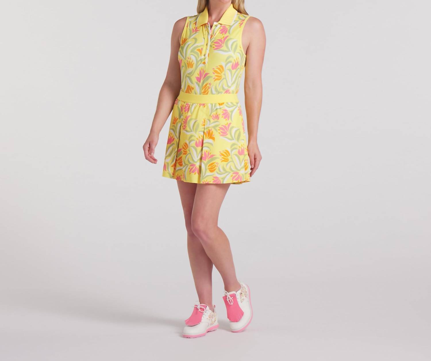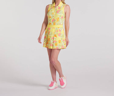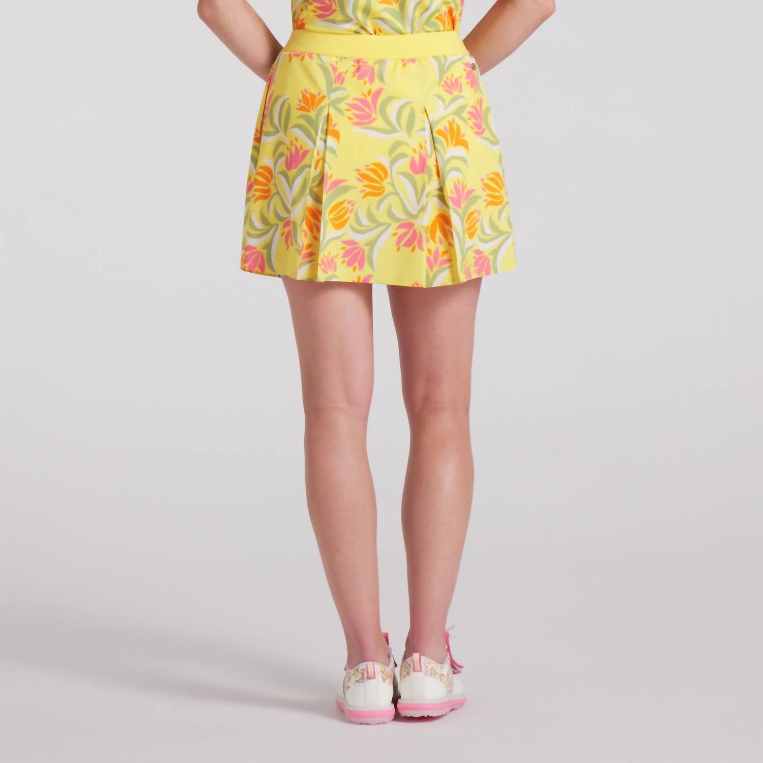 A skirt that you can do just about anything in? We love a good skort, especially this one! Elevate your athletic style with the Pleated Golf Skort by Puma, showcasing a vibrant sunny yellow hue and floral pattern. Designed with a pull-on closure, this skort features an elastic waistband for enhanced fit and mobility on the greens. Made from 86% recycled polyester and 14% elastane, its stretch woven composition offers UPF 50+ protection and includes on-seam hand pockets and attached inner shorts with side pockets for practicality. Care is simple with machine wash and tumble dry instructions, ensuring this piece remains a summer athleisure staple for your workout wardrobe.