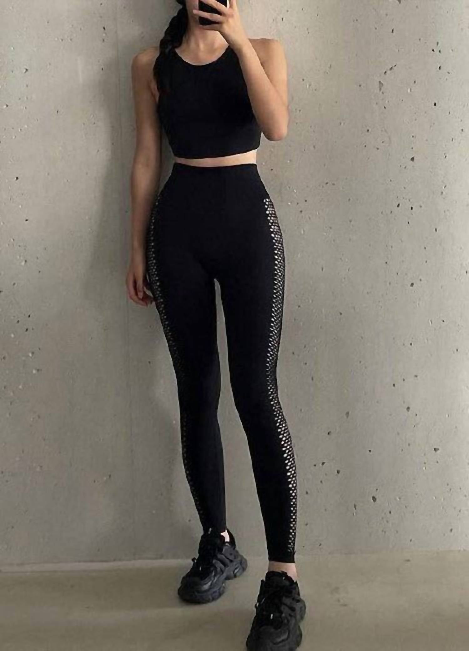 Elevate your workout wardrobe with the Fishnet Leggings by Rockstar Peach in sophisticated gray. Designed with see-through fishnet side panels and a scrunch back detail, these leggings are crafted from a medium-weight 87% Nylon,13% Spandex that ensures comfort during workouts. With a high-rise waist and a slim fit in a skinny leg style, these leggings define athleisure chic. Closure type: Pull on. Care: Machine wash and tumble dry. Perfect for your fitness sessions or casual athleisure looks.