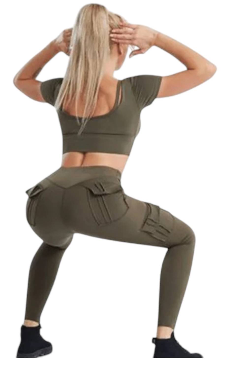 Presenting the Sgt Pocket Leggings by Rockstar Peach, crafted in a solid olive color for a sleek athleisure look. Made from a durable nylon blend, these leggings feature a flattering slim fit with back pockets, perfect for both workouts and everyday wear. The design boasts a skinny leg style and a convenient pull-on closure. For care, machine wash and tumble dry.