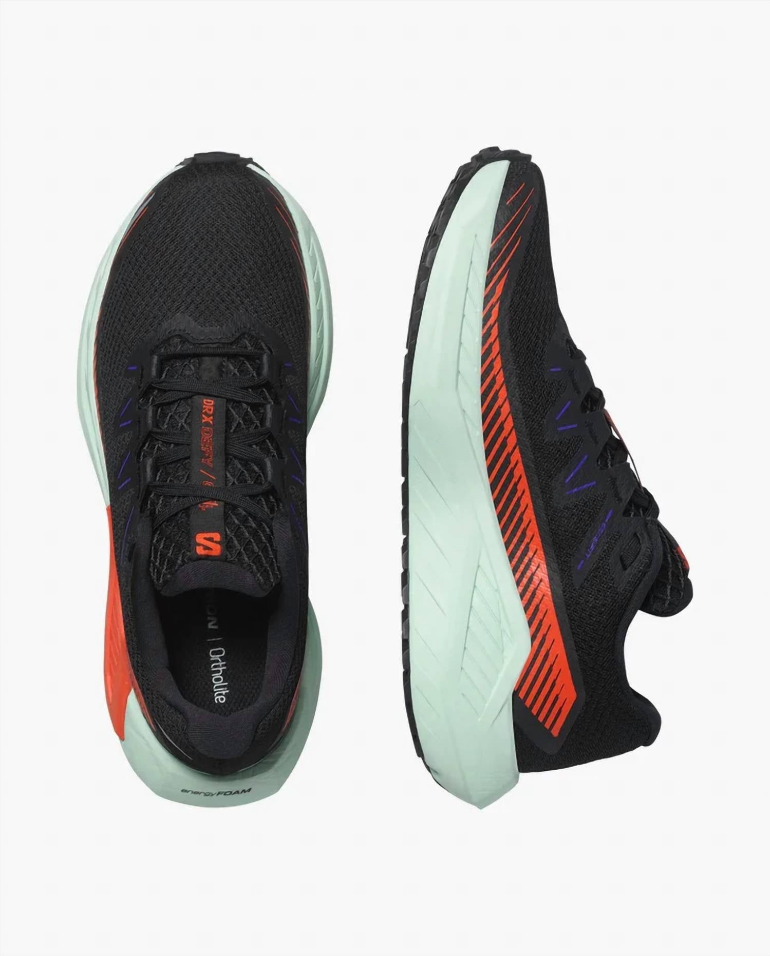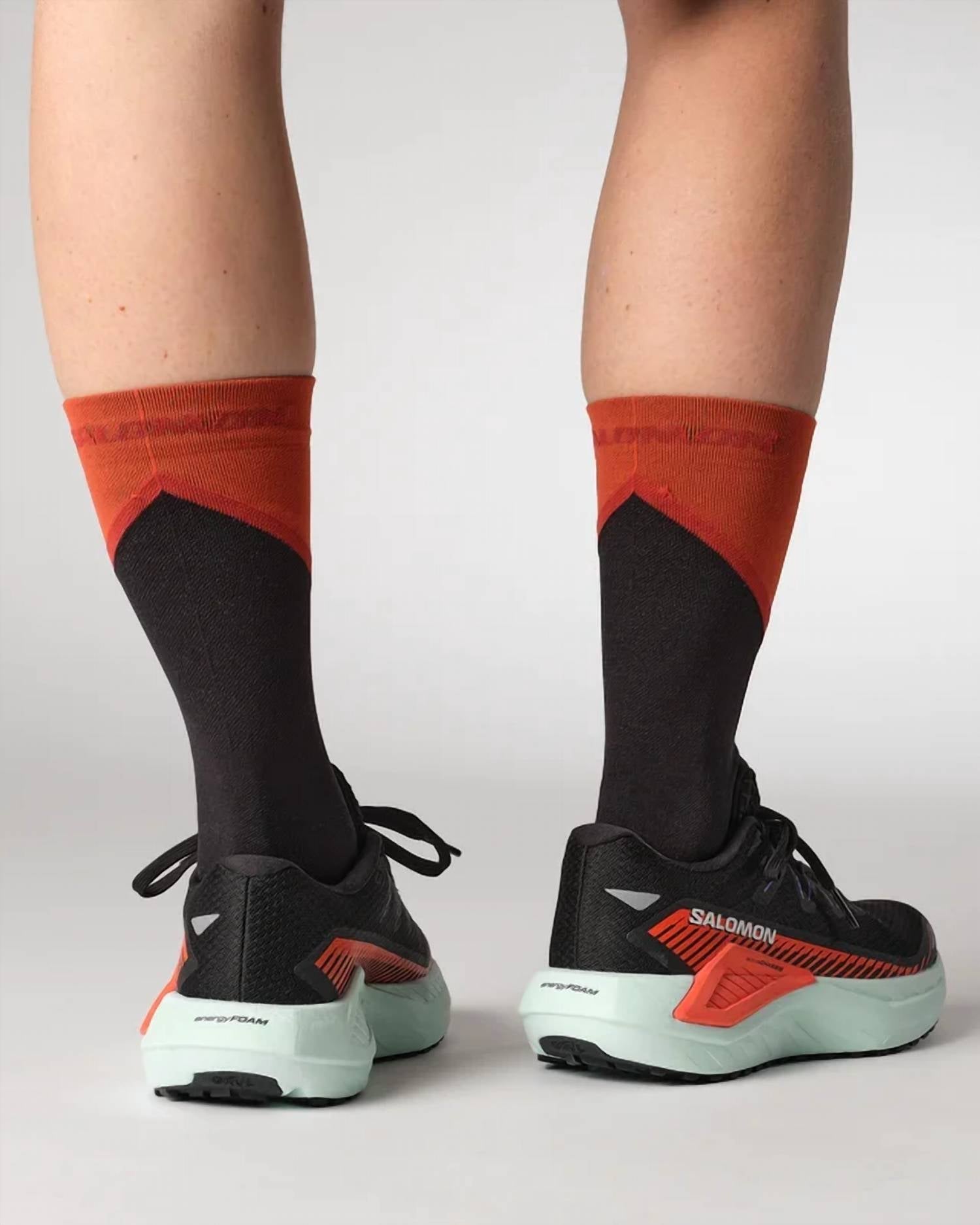 Introducing the Women's Gravel Running Shoes by SALOMON, designed for those who dare to escape the beaten path. With a lightweight build and moderate cushioning, these shoes offer the right support and stability for everyday runs on and off the road. Featuring a round toe shape, low heel height, and sleek color combination of black, cherry tomato, and bay, they effortlessly blend style with function. Weighing just 203 g and with an 8 mm drop, they're perfect for 2-3 runs per week in any athleisure setting.