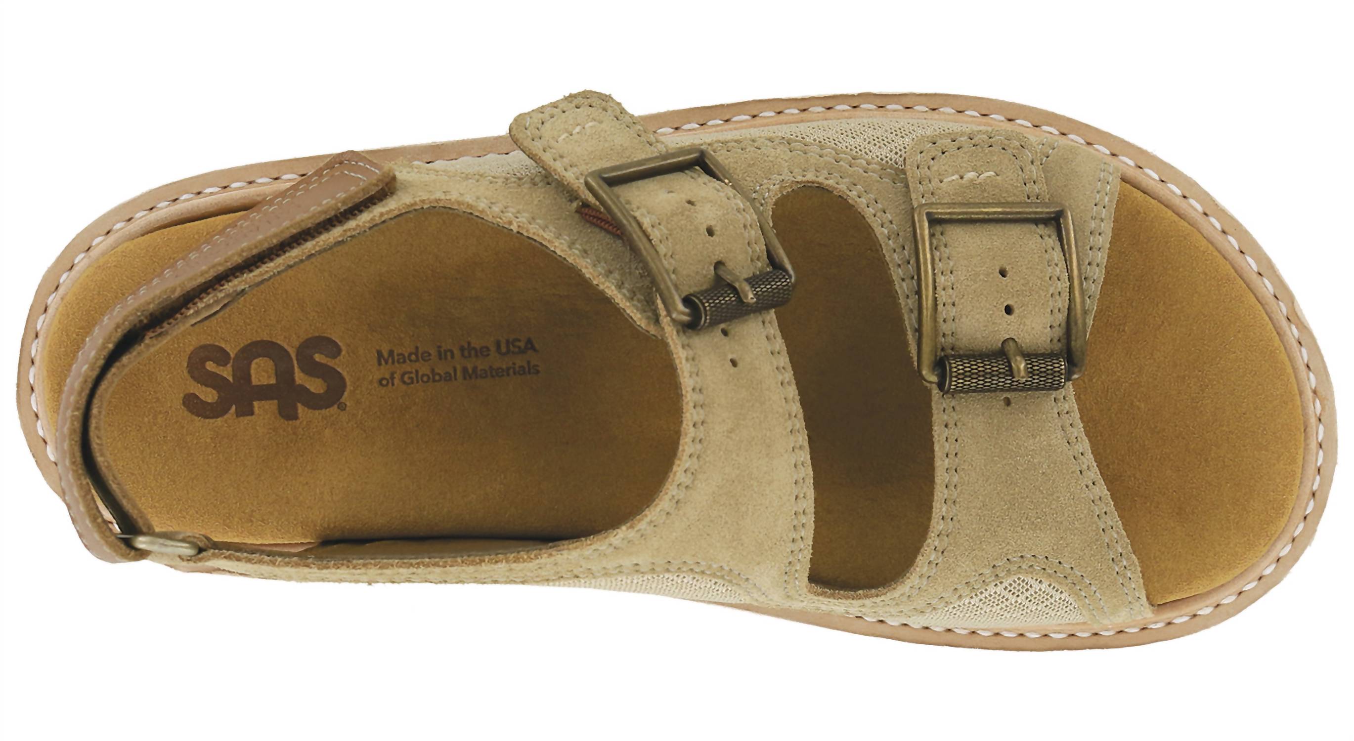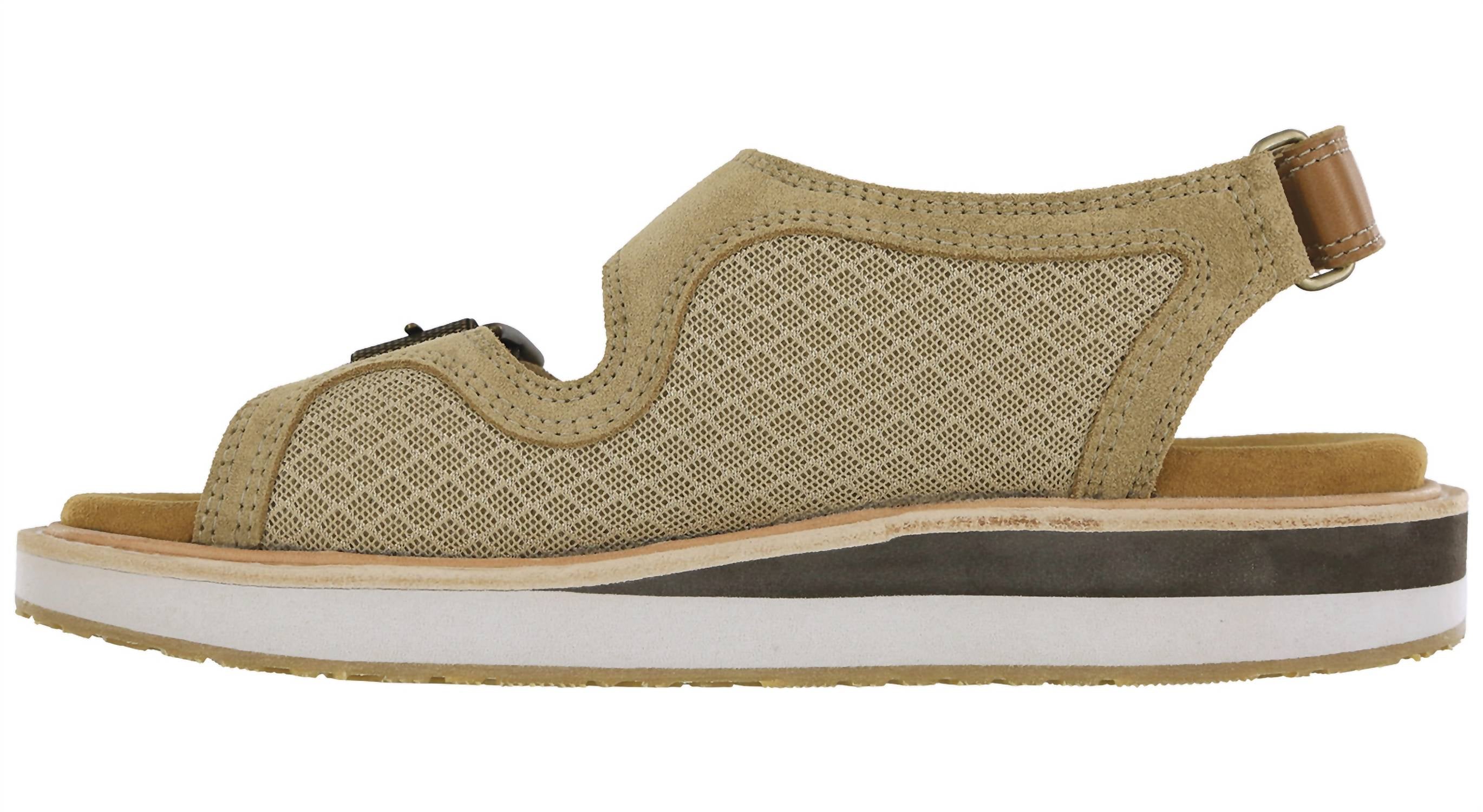 Flowy dresses, cropped pants, and even jumpsuits... this sandal works with them all! Meet the Women's Conga Heel Strap Sandal by SAS, the epitome of comfort and customization. This classic sandal features a round toe and combines genuine leather and breathable mesh woven twill for a durable upper. Offering an adjustable buckle closure and a hook and loop closure for a tailored fit, it boasts a 1.125" flat heel for all-day wear. With a dual density contoured molded insole covered with soft microfiber and a triple density sole unit for enhanced stability, this Coverall color sandal guarantees complete underfoot comfort.
