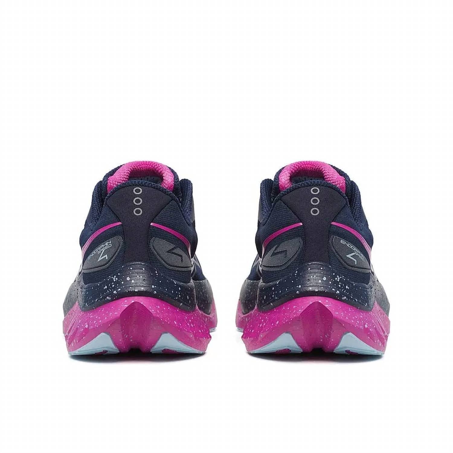 When fashion meets function. Discover the Women's Endorphin Speed 4 Shoes by SAUCONY in an eye-catching Navy/Fuchsia. Ideal for fitness and workout sessions, these athletic shoes feature a round toe design. Perfect for spring, the Endorphin Speed 4 offers a "just right" combination of support and comfort through its winged nylon-plate, SPEEDROLL technology, and PWRRUN PB foam. Whether for race day or moderate training, these shoes provide the balance of support, rebound, and resilience you need.