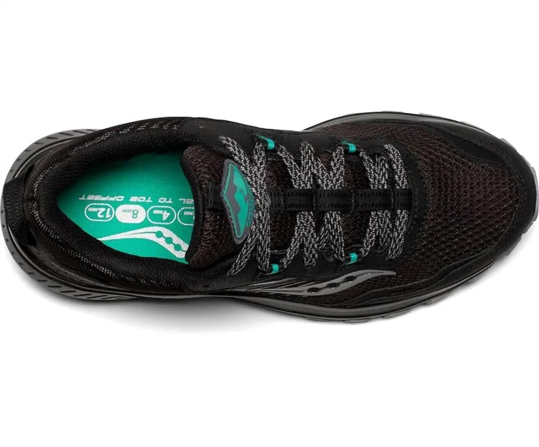 Meet the Women's Excursion TR15 Shoes by SAUCONY, engineered for your adventurous spirit. These athletic shoes feature a round toe design and low platform heel, perfect for fitness and workout sessions. The black and dark green color scheme complements the trail-specific mesh, ensuring secure footing with grippy carbon rubber lugs. Crafted with a focus on comfort and sustainability, they incorporate VERSARUN cushioning and recycled materials to enhance your outdoor experience. Ideal for summer, these shoes are the ultimate fusion of style and functionality.
