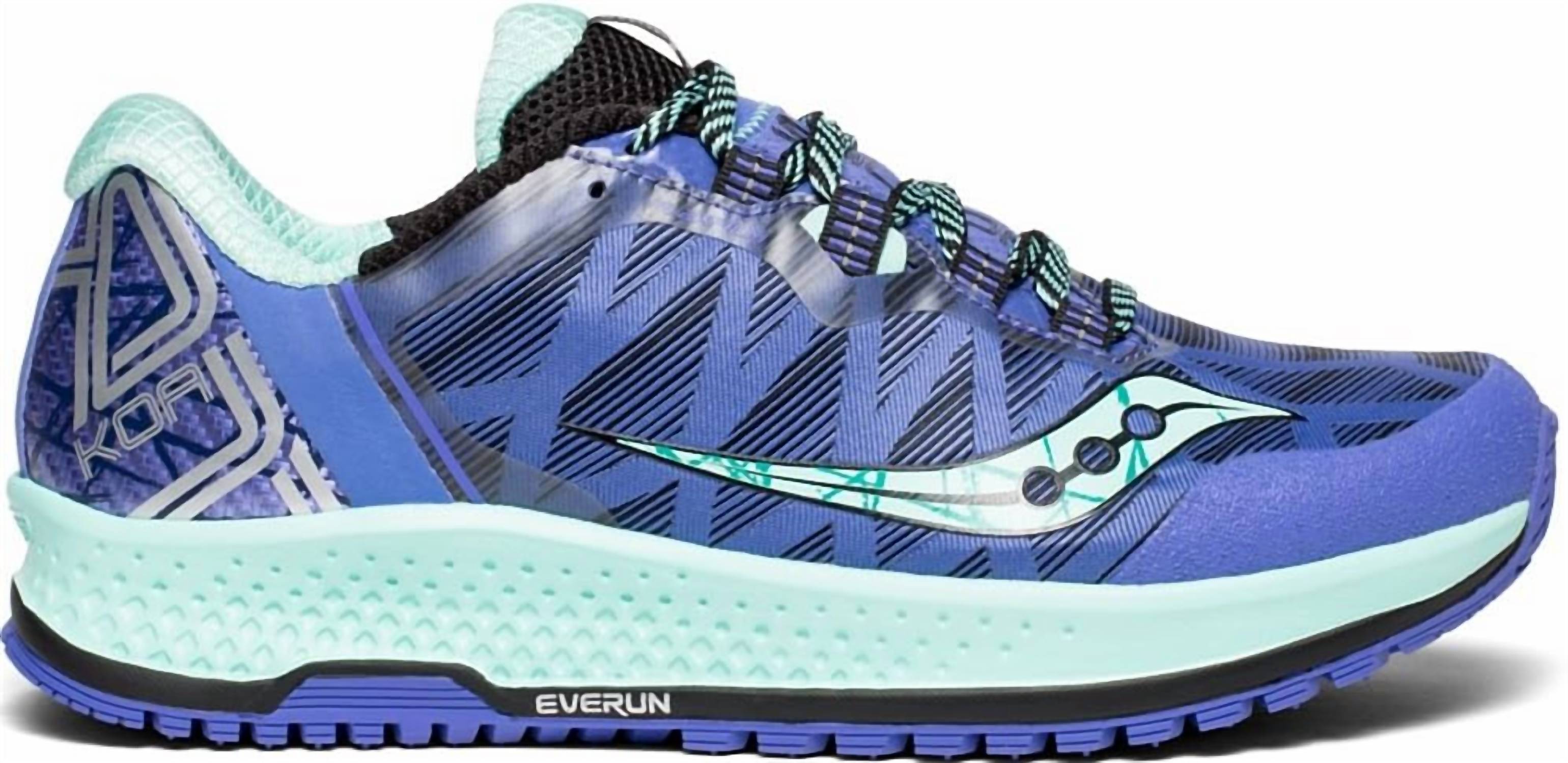 Introducing the SAUCONY Women's Koa Tr Shoes in a stylish blue/violet colorway, ideal for women who embrace the athleisure trend on game day. Crafted from 100% synthetic fabric with a durable rubber sole, this imported low-top sneaker features a woven upper and a robust PWRTRAC outsole designed with 3.5mm lugs for optimal traction. The shoes have a comfortable round toe and a flat heel style with a low heel height of 1 1/4" to 2", making them perfect for summer activities.