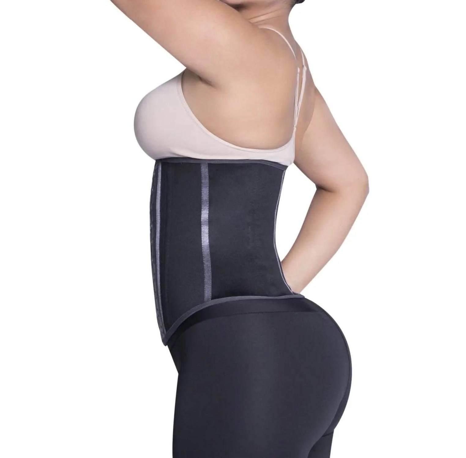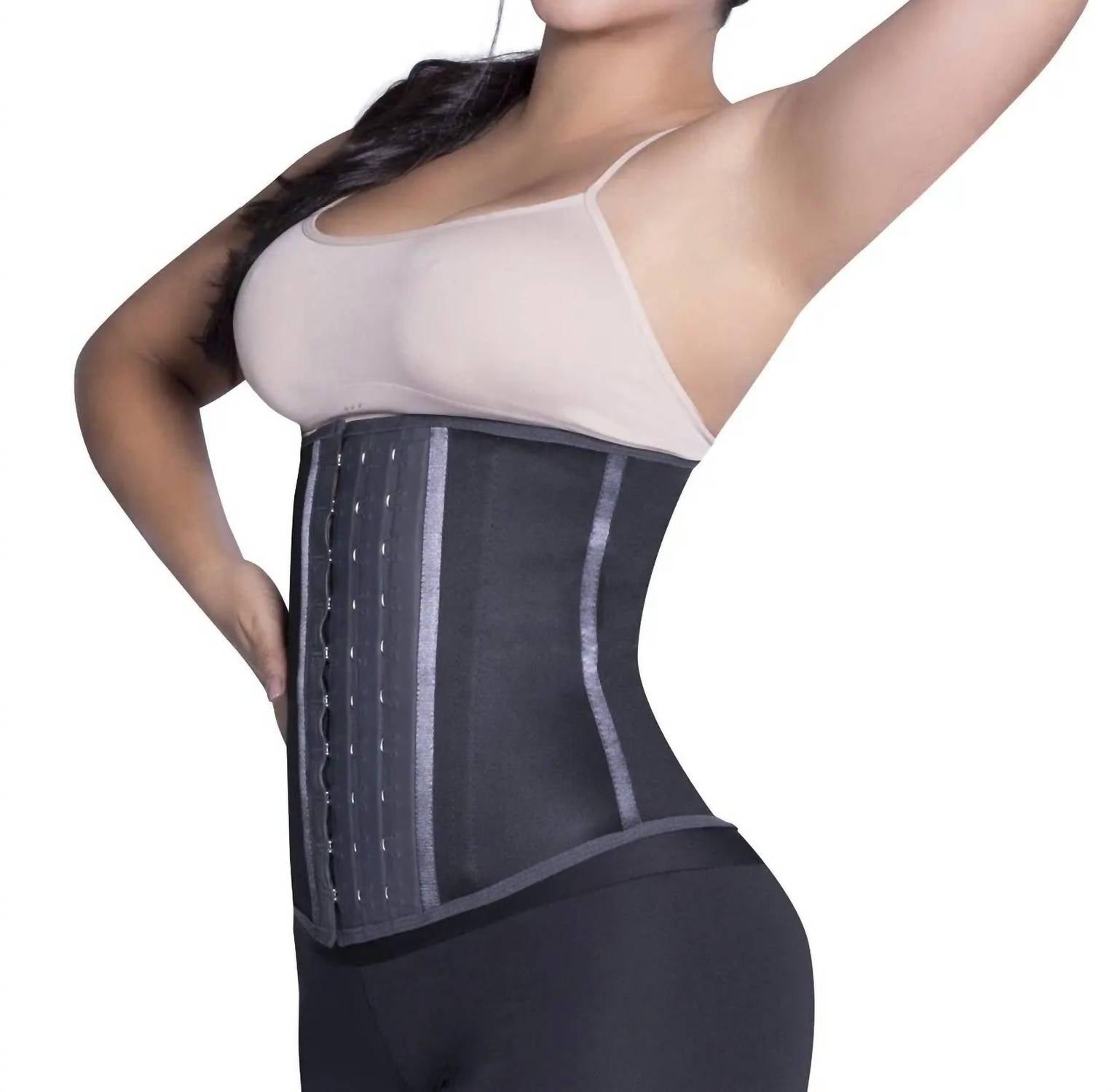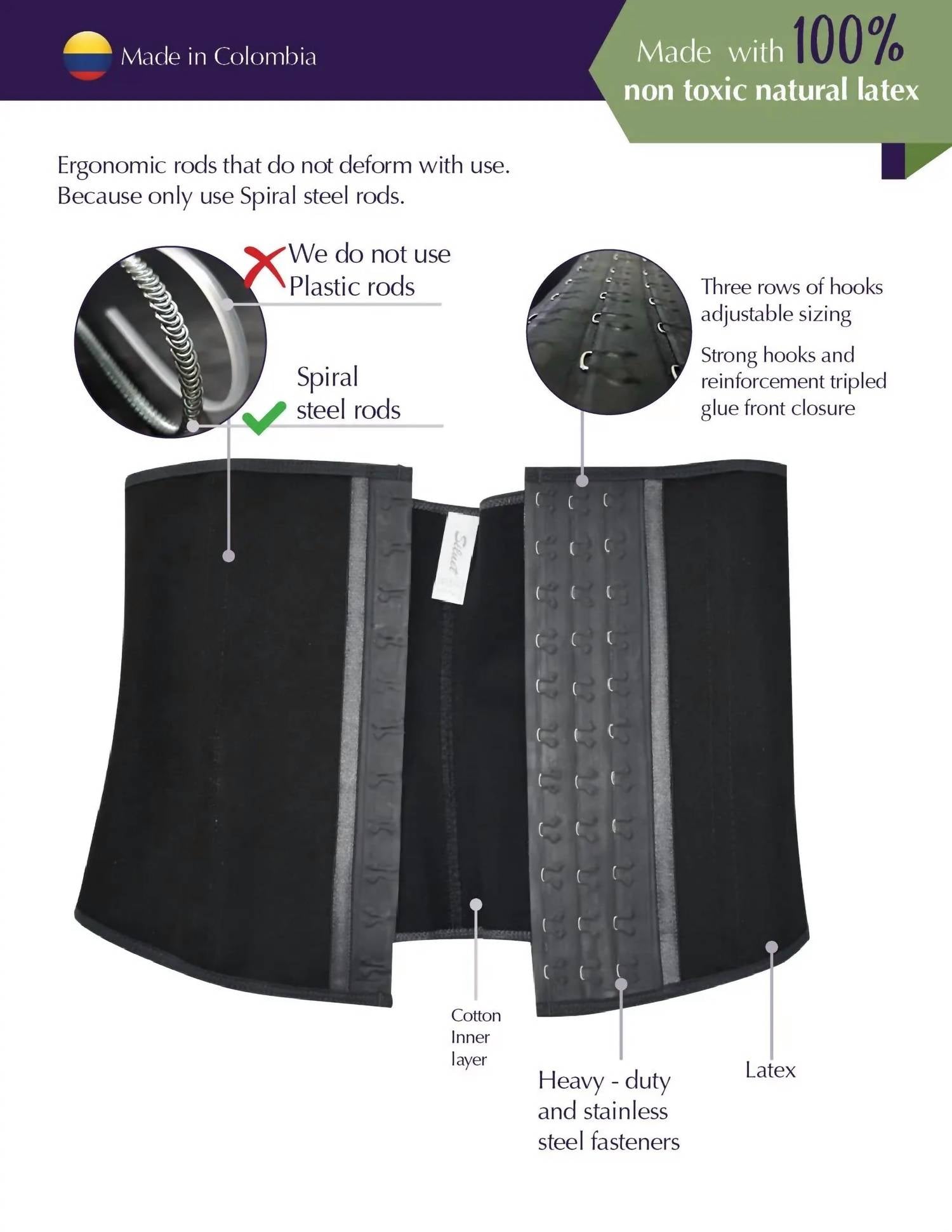 Achieve a sleek, contoured silhouette with the Siluets Latex Waist Trainer in Black/F31, designed specifically for women. This shapewear piece expertly shapes the waist and flattens the abdomen with a composition of 50% Latex, 28% Cotton, and 22% Polyester and Lycra. Featuring a cotton inner lining for comfort, ergonomic rods for improved posture, and a three-row hook-and-eye closure with heavy-duty stainless-steel fasteners for a customizable fit. Care instructions include machine wash and tumble dry. Ideal for boosting perspiration during workouts and enhancing your athletic performance.