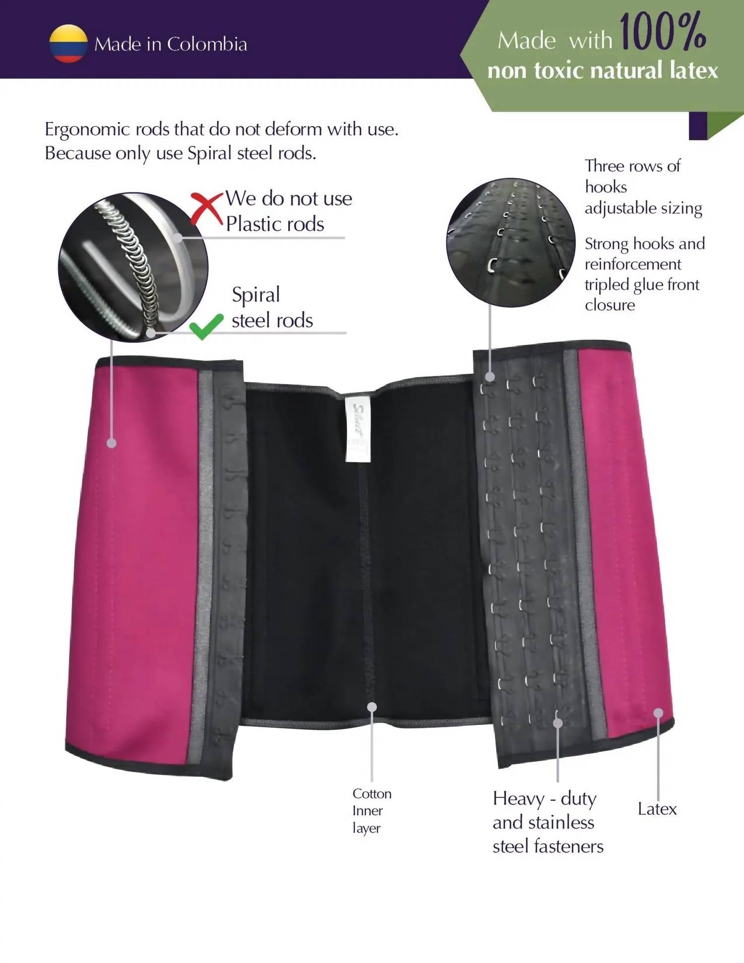 Introducing the Siluets Latex Waist Trainer, a must-have in vibrant Pink/F32 for enhancing your workout routine. This shapewear piece features adjustable three-row hook-and-eye closures, ensuring a custom fit while the ergonomic rods support your posture. Crafted with a composition of 50% Latex, 28% Cotton, 22% Polyester, and Lycra, it’s perfect for shaping the waist and increasing perspiration during workouts. Care instructions advise machine washing and laying flat to dry. Make sure to check the size guide for the best fit.