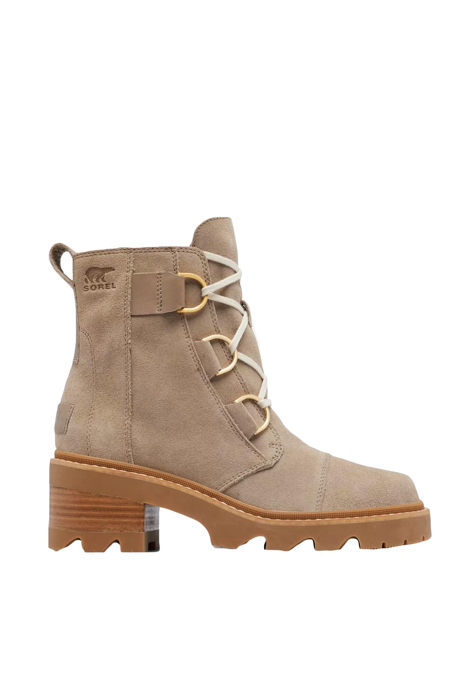 Step out in style and showcase your impeccable taste with these adorable lace-up boots. Keep it casual with a maxi dress, or elevate your look by pairing these boots with the perfect skinny jeans and blazer. Elevate your style with the Women's Joan Now Lace Boot by SOREL, ideal for city and country adventures. Made from waterproof leather in Omega Taupe Gum, this boot has 2-inch chunky heels for comfort and durability. With D-ring hardware and crafted welt construction, it features a medium width and round toe for a balanced fit. Perfect for women seeking timeless elegance and practicality.
