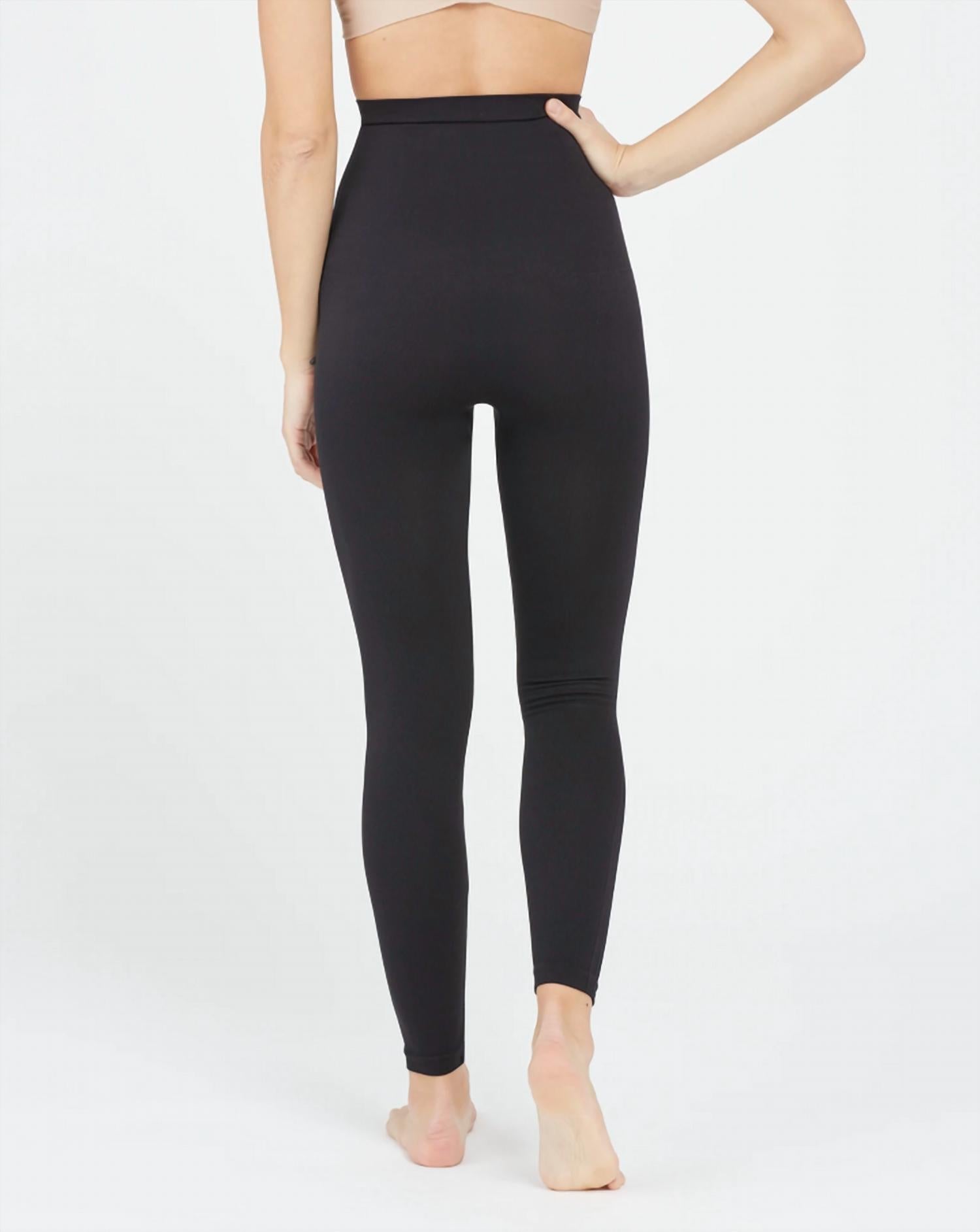 Leggings you can dress up or down for any occasion. Introducing the Look At Me Now High-waisted Seamless Leggings by Spanx, expertly crafted for comfort and style. Made from a durable nylon blend, these leggings feature a sleek solid black design with a slim fit and skinny leg. The pull-on closure and high-rise waist ensure a flattering and secure fit. Easy care with machine wash cold and tumble dry low.