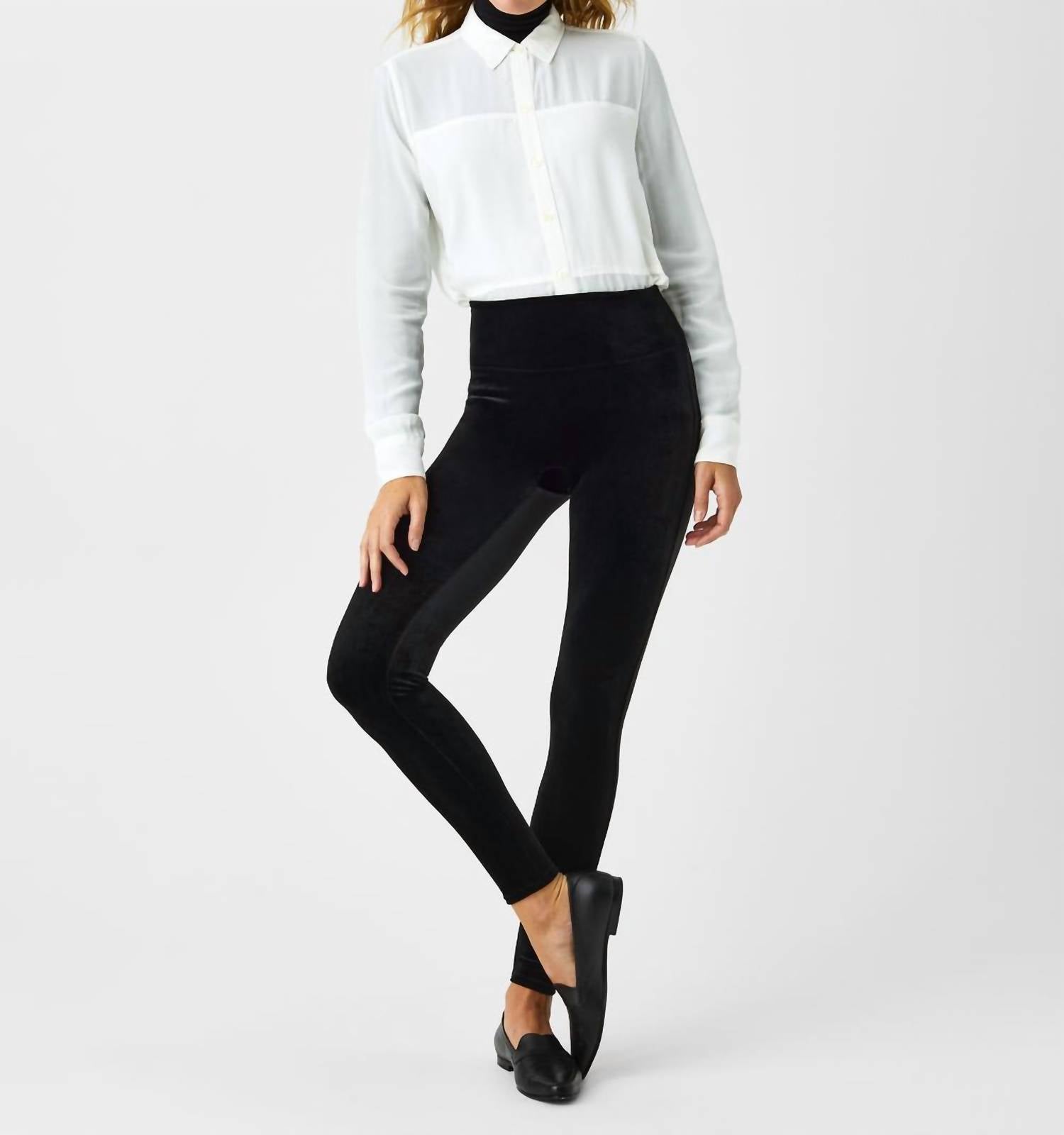 The legging you didn't know you needed and you won't want to take off.This Leggings is designed with signature Power Waistband and soft velvet fabric. Hits at natural waist. Inseam: 28". Ankle Length. Center-seam free. Soft, velvet fabric, body-skimming fit, flattering coverage and a super comfortable feel. Body: 91% Polyester, 9% Elastane. Lining: 80% Polyester, 20% Elastane.