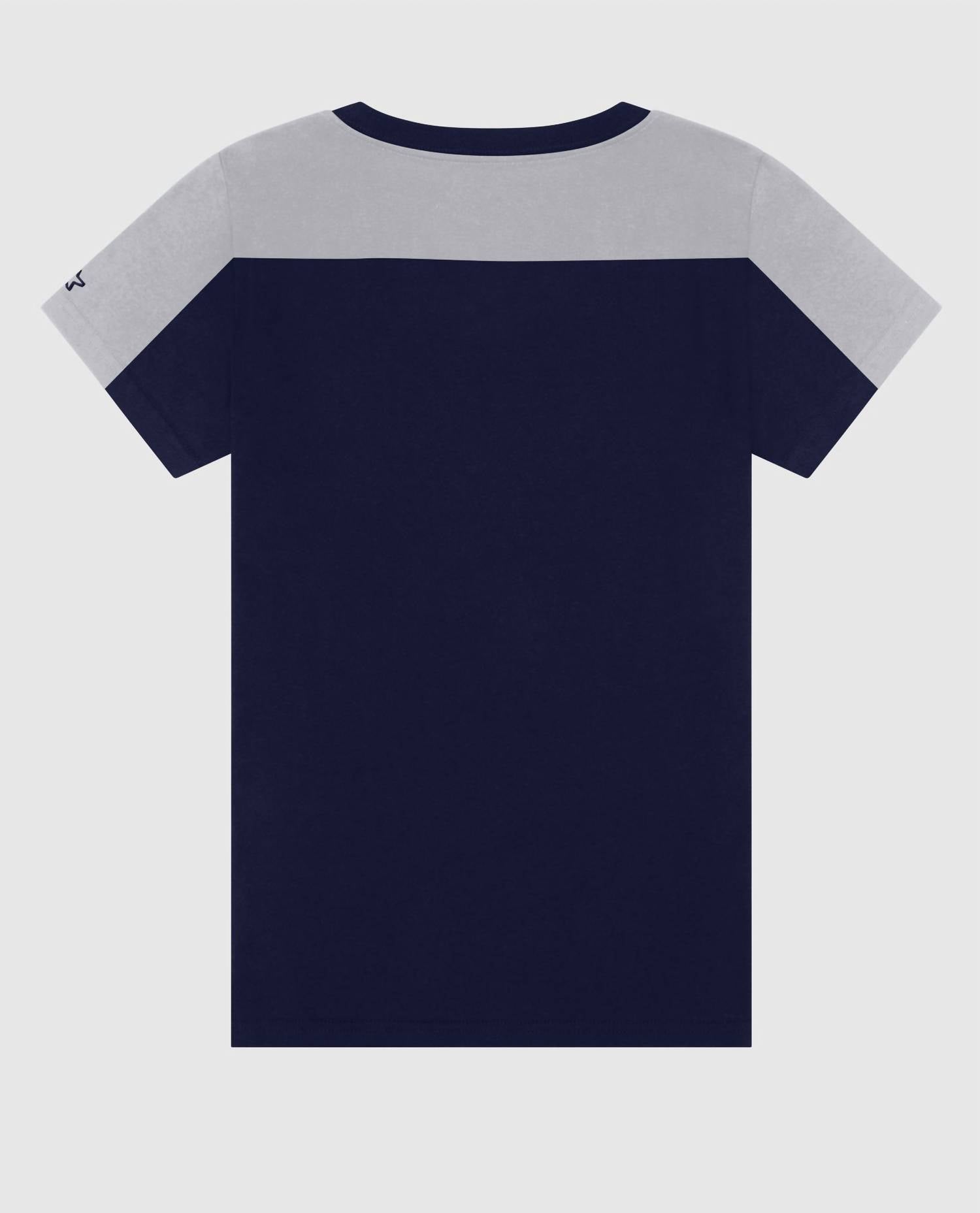 Show your team spirit with the Women's Dallas Cowboys Crew Neck Color Block Shirt by Starter, featuring short sleeves and a stylish graphic pattern. The navy base is accented with a contrasting color block across the shoulders and sleeves. With a classic crew neckline and pull-on style, it's perfect for casual outings and game days alike. True to size, this tee combines sleek design with fan pride.