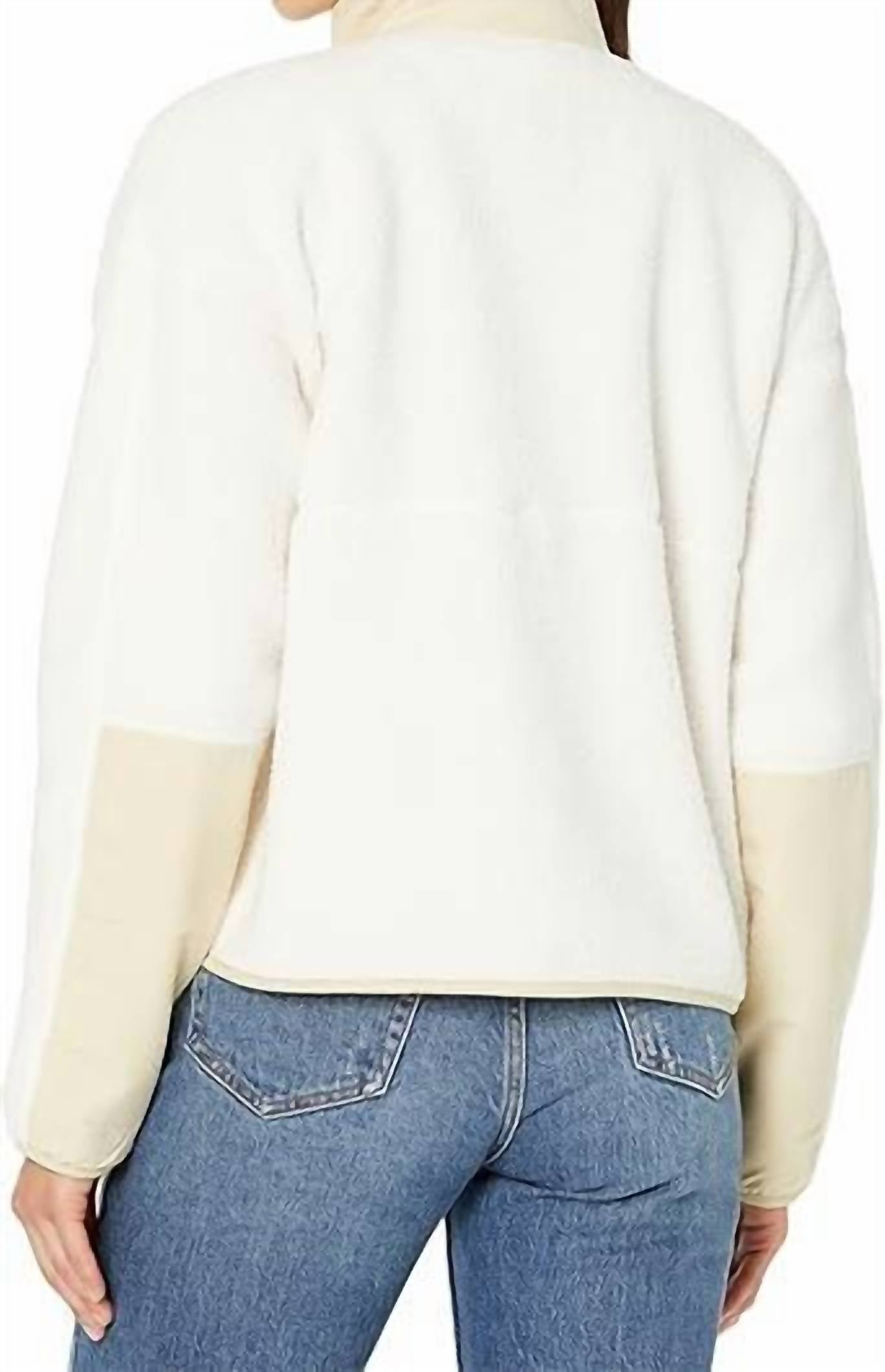Introducing the Cragmont Fleece Jacket by THE NORTH FACE in Gardenia White, a perfect addition to your winter wardrobe. This long-sleeve teddy jacket is crafted from durable polyester, enhanced with a textured pattern and mockneck design for added warmth. Featuring dropped shoulders, a zip closure, and reinforced overlays, it offers both comfort and practicality. Pockets include secure-zip chest and welt hand pockets, while care includes machine wash and tumble dry instructions.100% polyester.