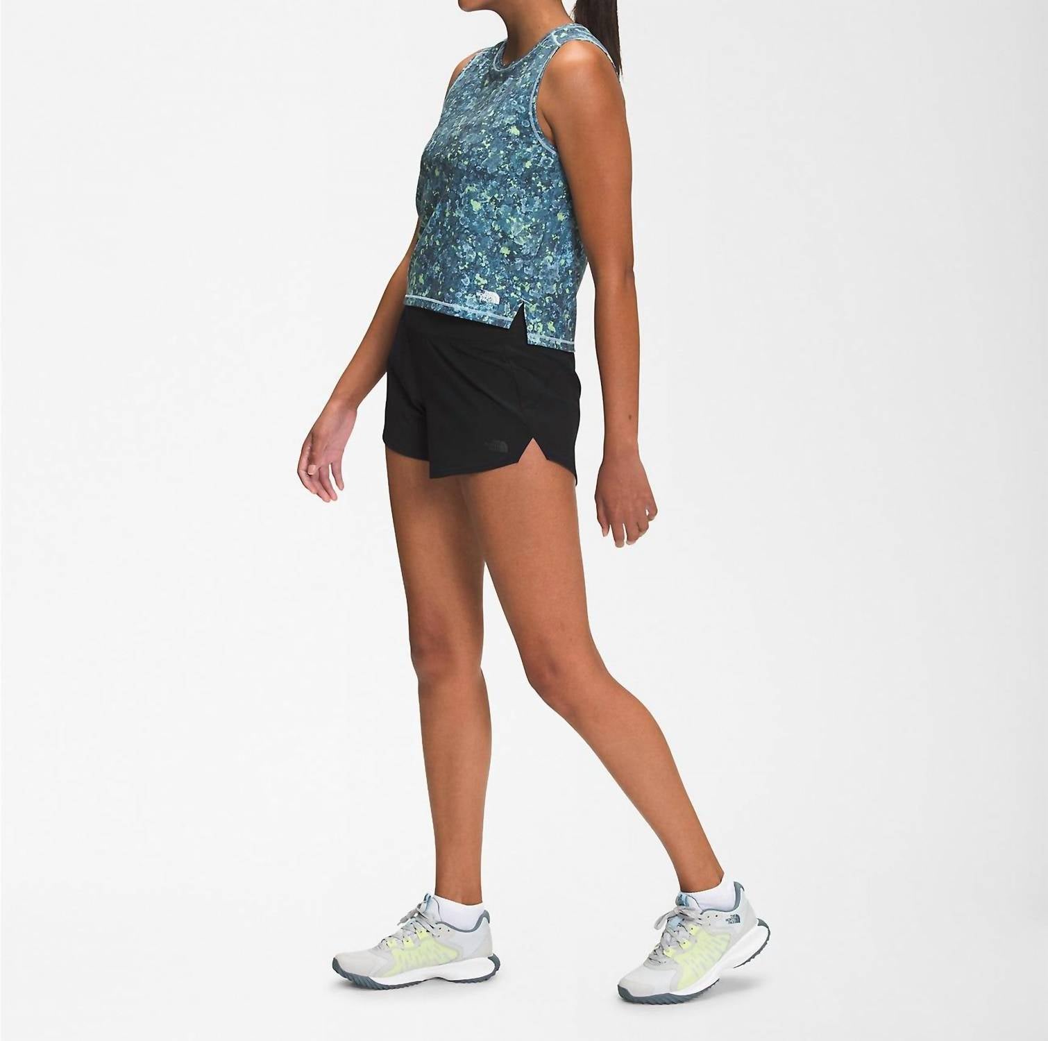 The Women's Arque 3" Shorts by The North Face in TNF Black are crafted for active exploration with an ultra-soft, moisture-wicking polyester fabric. Featuring a standard fit, these shorts boast an encased-elastic waistband and concealed-zip back pocket for functionality, while split hems and a crotch gusset enhance mobility. Made with 89% recycled polyester, they integrate FlashDry-XD™ materials for optimal moisture management and durability, alongside anti-odor technology for freshness. Closure is a convenient pull-on style, making them perfect for game day activities.