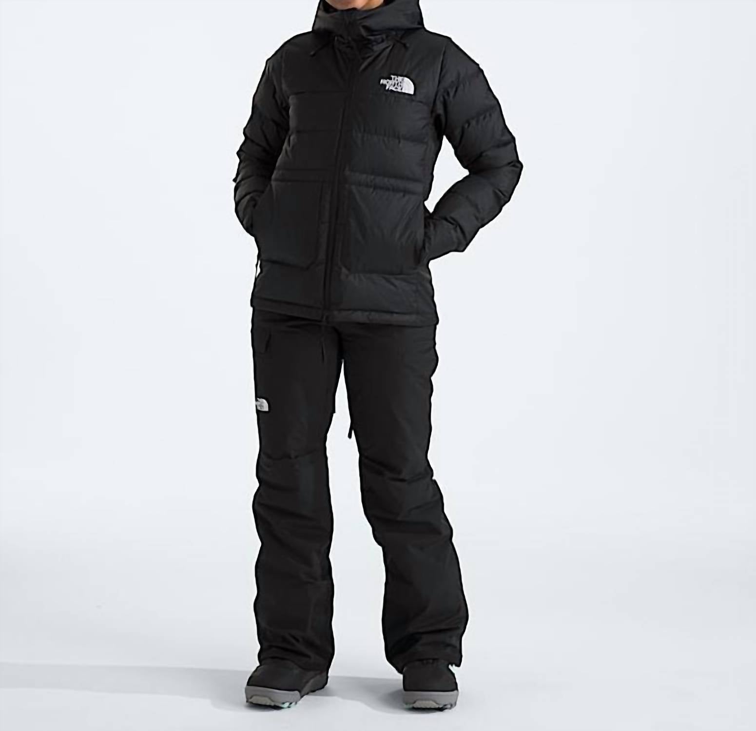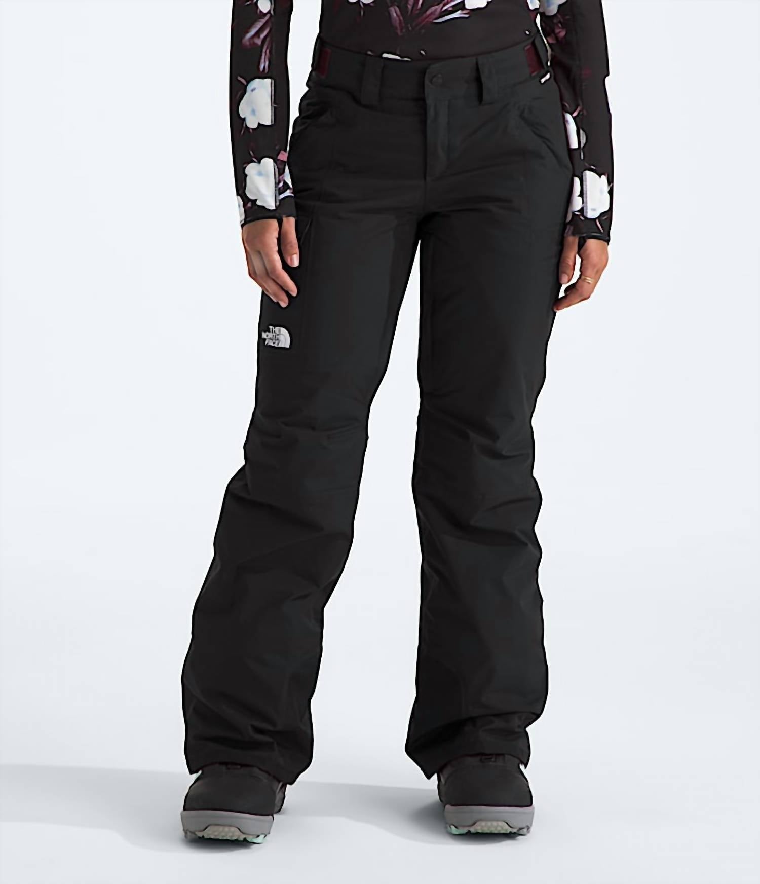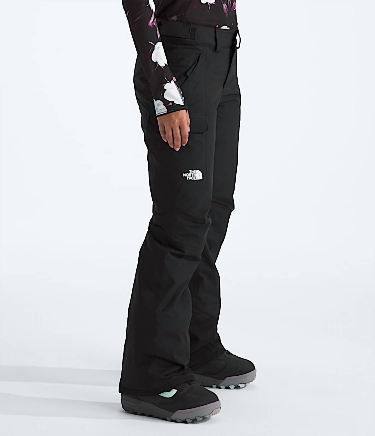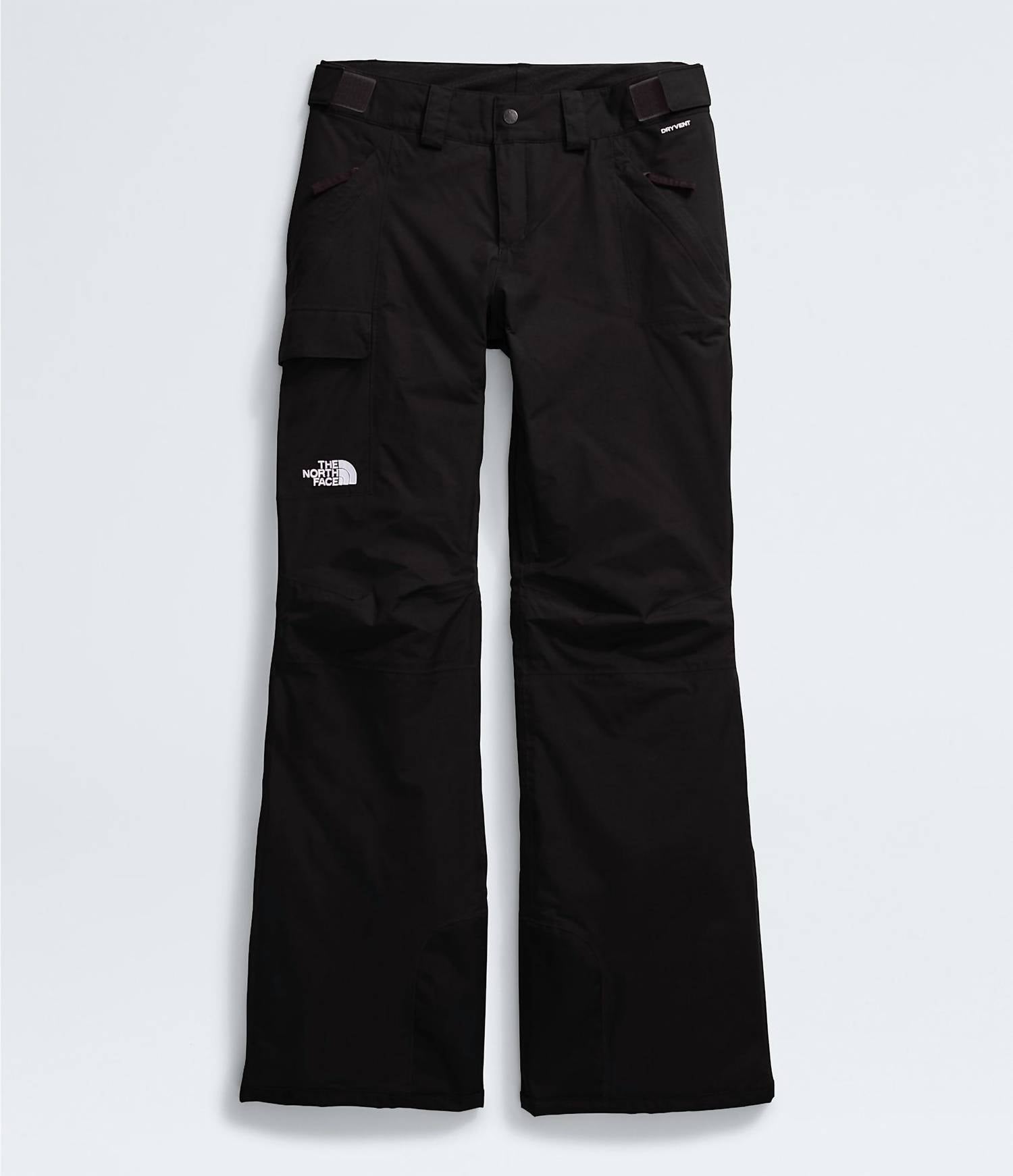 The Women's Freedom Insulated Pants by THE NORTH FACE offer a modern fusion of style and functionality in TNF BLACK-NPF. These straight-leg pants feature articulated knees for increased mobility and a regular fit with a mid-rise waistband, complete with belt loops and adjustable tabs. Constructed from Nylon, they boast Heatseeker Eco insulation for warmth, a waterproof, breathable DryVent 2L shell, and a zip-fly with a snap-tab closure complemented by secure-zip hand pockets and a cargo pocket on the right thigh. Designed for easy care, simply machine wash and tumble dry, making them perfect for fall streetwear and holiday parties alike.