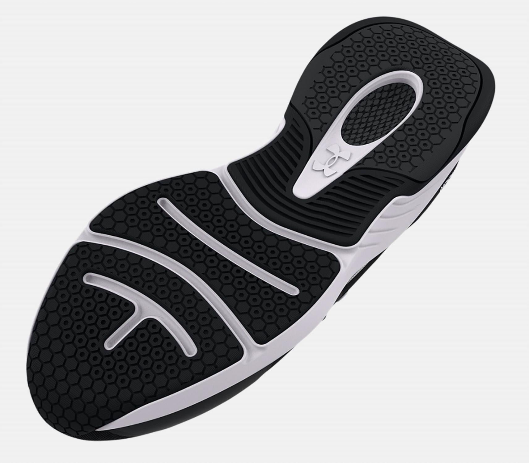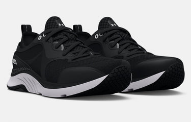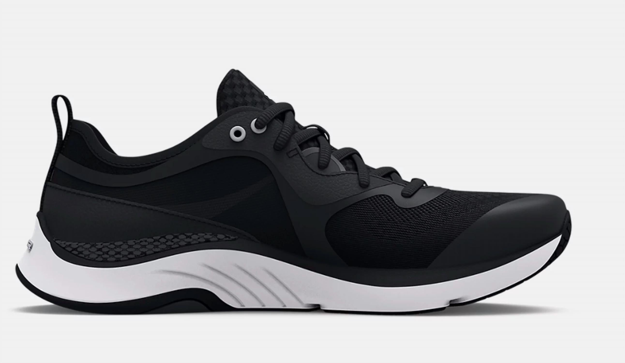 Cute, functional, and comfortable. These sneakers check all the boxes. Introducing the Women's Hovr Omnia Training Shoes by Under Armour, designed specifically for the female foot to elevate your workout experience. Crafted with a breathable engineered mesh upper, these sneakers ensure strategic support and enhanced stability with a molded quarter panel and internal strap. The responsive UA HOVR™ cushioning technology minimizes impact, returns energy, and propels you forward, while the durable rubber outsole provides flexible grip where you need it most. Ideal for fitness and workout sessions, these black sneakers feature a round toe shape adding both style and comfort.