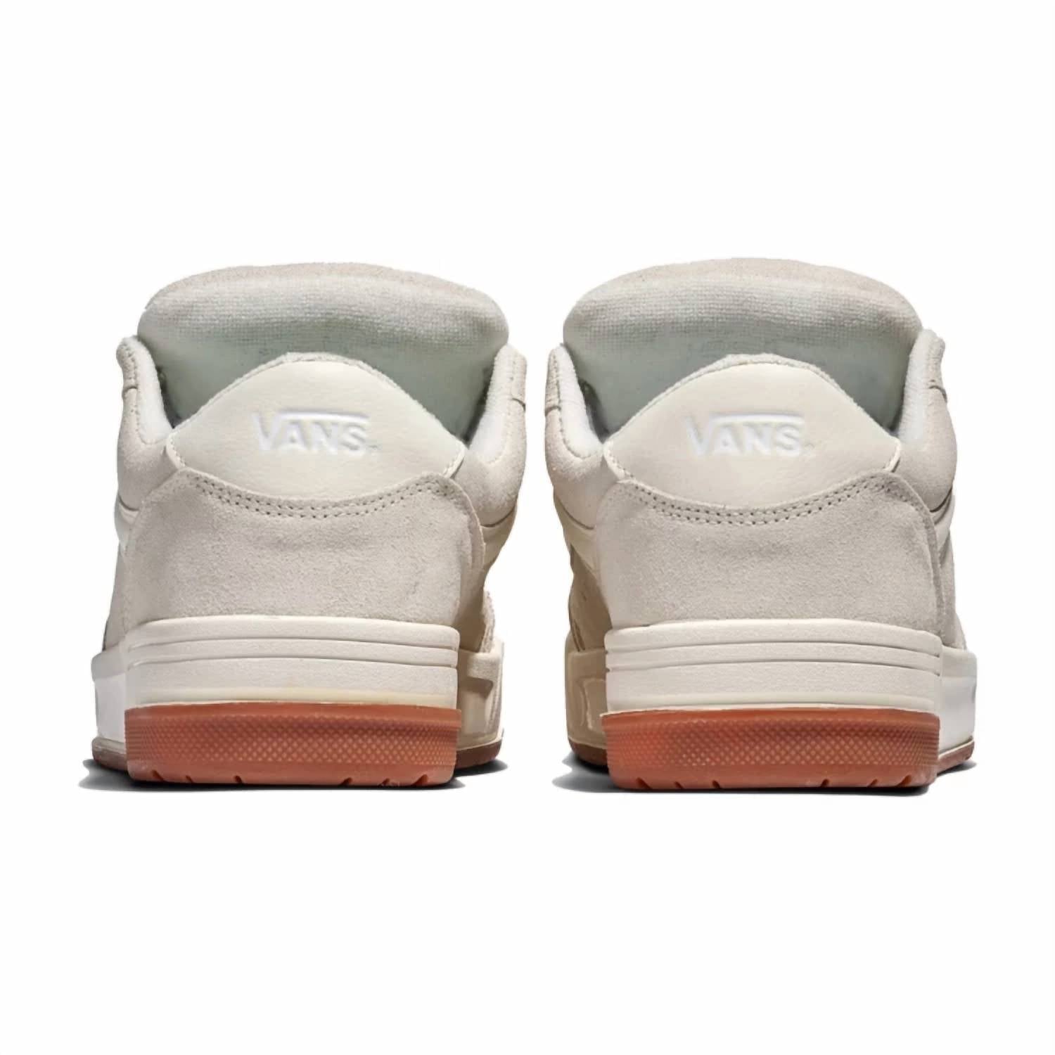 Get your daily steps in with these adorable sneakers. Step into a blend of retro and modern style with the Women's Vans Hylane Shoe in Marshmallow. Crafted with leather and synthetic uppers, this sneaker features a glossy puff Sidestripe™ and a puffy Y2K skate tongue for added flair. Its sturdy cupsole construction and chunky sidewall design with a compression channel ensure durability and comfort. Completed with a reverse waffle outsole, these sneakers incorporate a bold oversized Vans logo paired with flex grooves for superior grip.