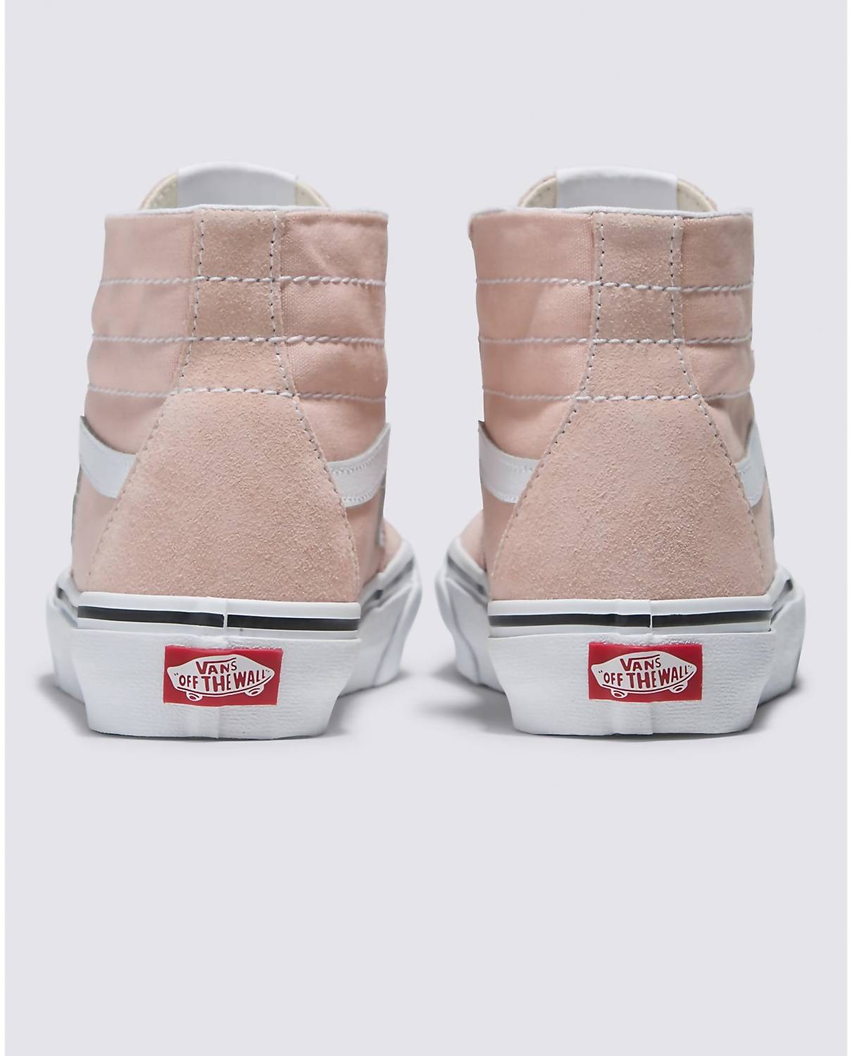 When fashion and function come together seamlessly. The Women's Sk8-Hi Tapered Sneaker by Vans is a chic high-top sneaker perfect for streetwear enthusiasts. Crafted with sturdy suede uppers, it showcases a more slender and fitted silhouette than the traditional Sk8-Hi, complemented by iconic rubber waffle outsoles. Designed in the alluring Rose Smoke color, this sneaker is perfect for a fresh spring look. It features a round toe shape and is available in women's sizing, making it an ideal choice for back-to-school fashion.