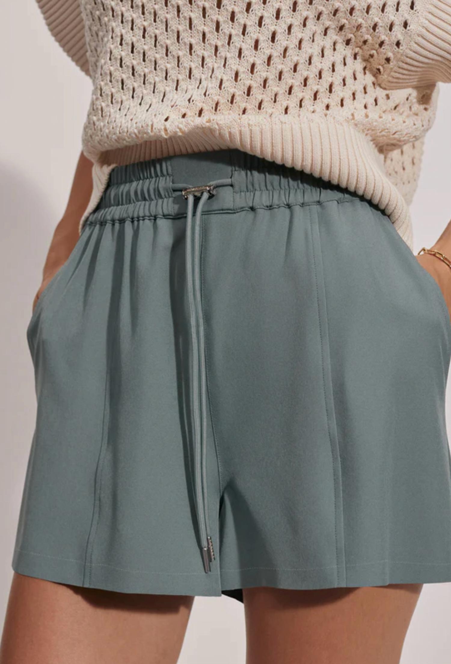 Fit to perfection, we love these high-waist shorts and you will too.Textured stretch twill. High-waisted. Elastic waistband. A-line fit. Centre seam stitch detail to the front and back. Crisp pleats. 90% Polyester, 10% Elastane.
