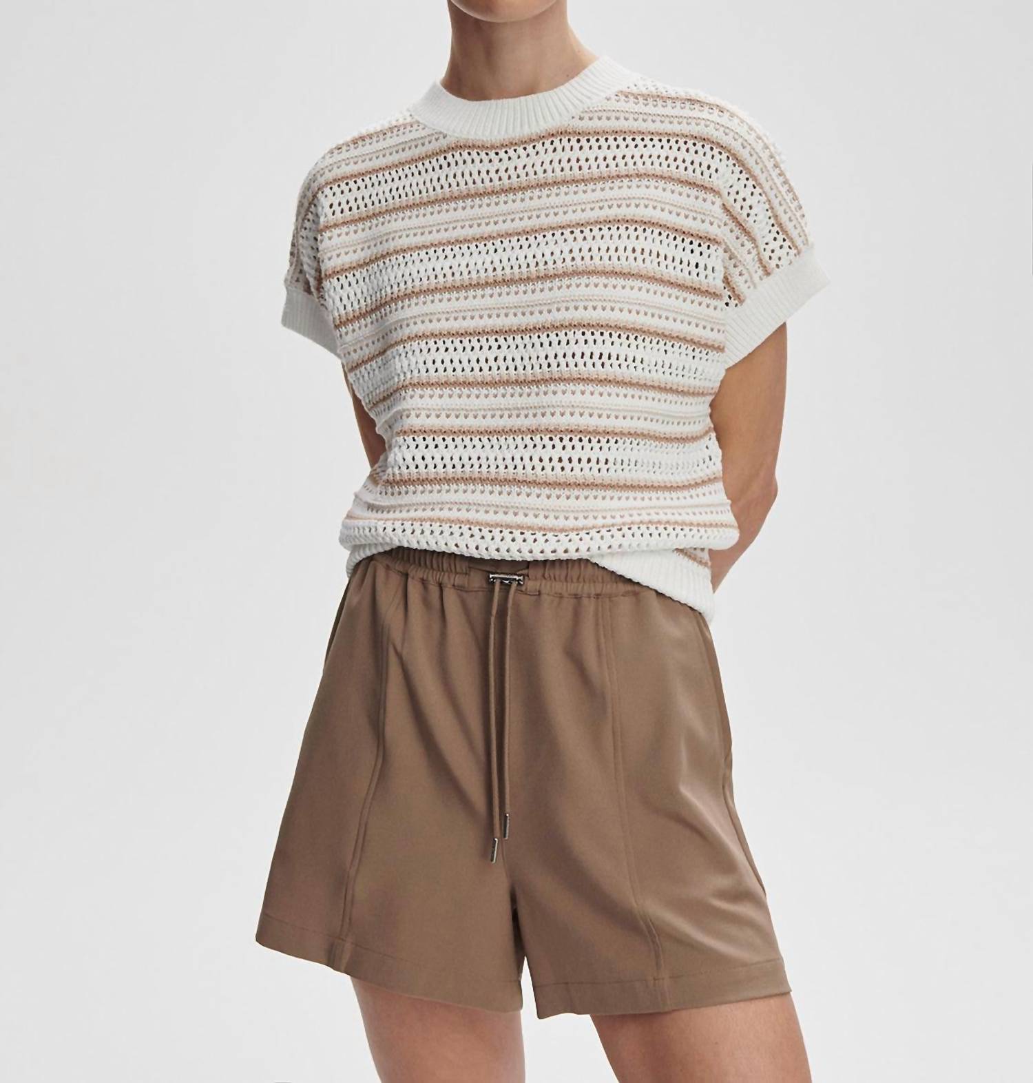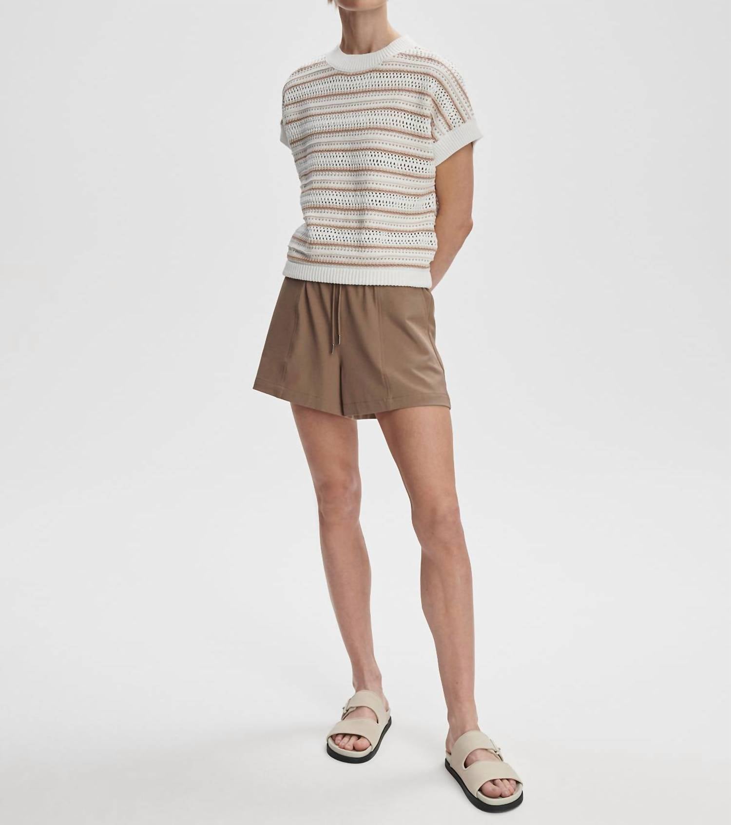 Introducing the Ciara Stripe Knit Top by VARLEY, a distinctive piece crafted for a vibrant summer wardrobe. This short sleeve top, designed from a textured cotton blend, features a playful Chanterelle Stripe pattern. With a convenient pull-on style, it offers an effortlessly chic look perfect for vacation occasions. Care: Dry clean only and lay flat to dry.
