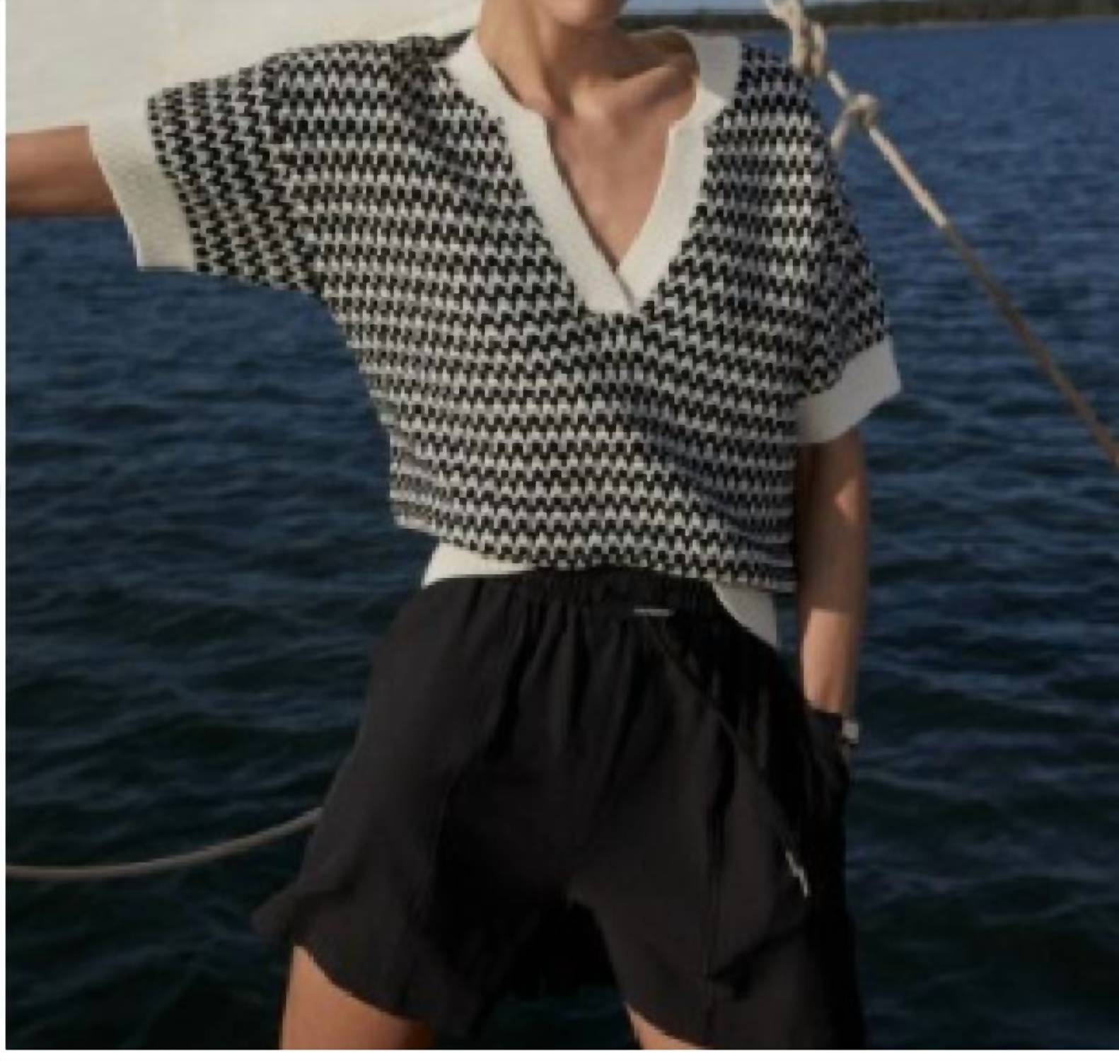 Introducing the Dora Knit Top by Varley, a stylish addition to your summer wardrobe in an elegant Egret hue. This women's blouse features short sleeves and a flattering V-neckline, perfect for holiday parties and casual outings alike. With a pull-on closure and a chic patterned design, it seamlessly blends comfort and style. Make a statement this season with this must-have piece.