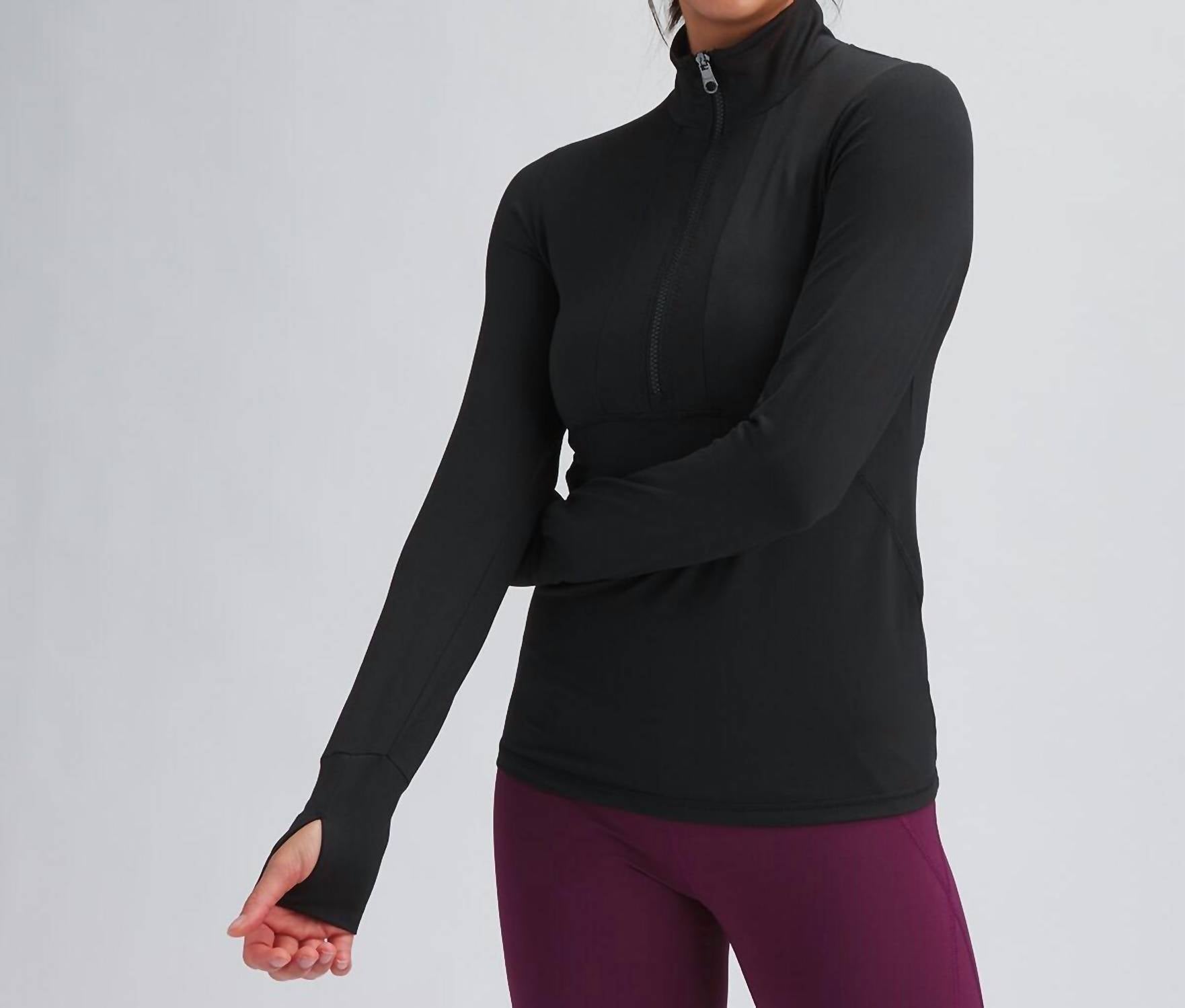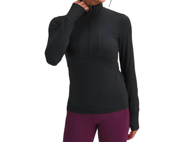 A casual yet cool jacket that every closset needs.Cut in soft and breathable stretch jersey, a fitted, half zip midlayer jacket. Built with flattering curved paneling and a concealed back pocket, this lightweight style also features thumbholes. Fabric: 90% Polyester, 10% Elastane. Wash cold.
