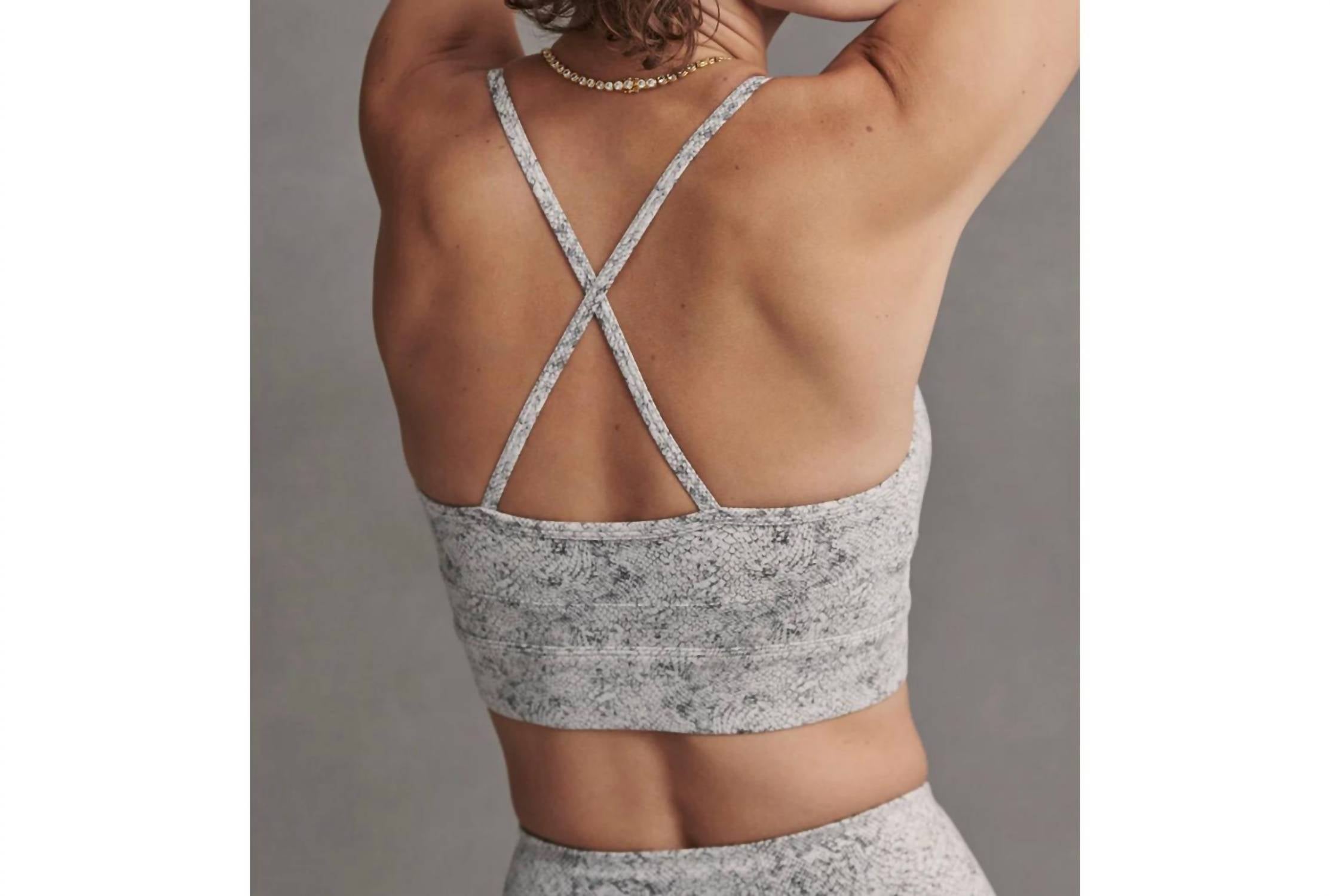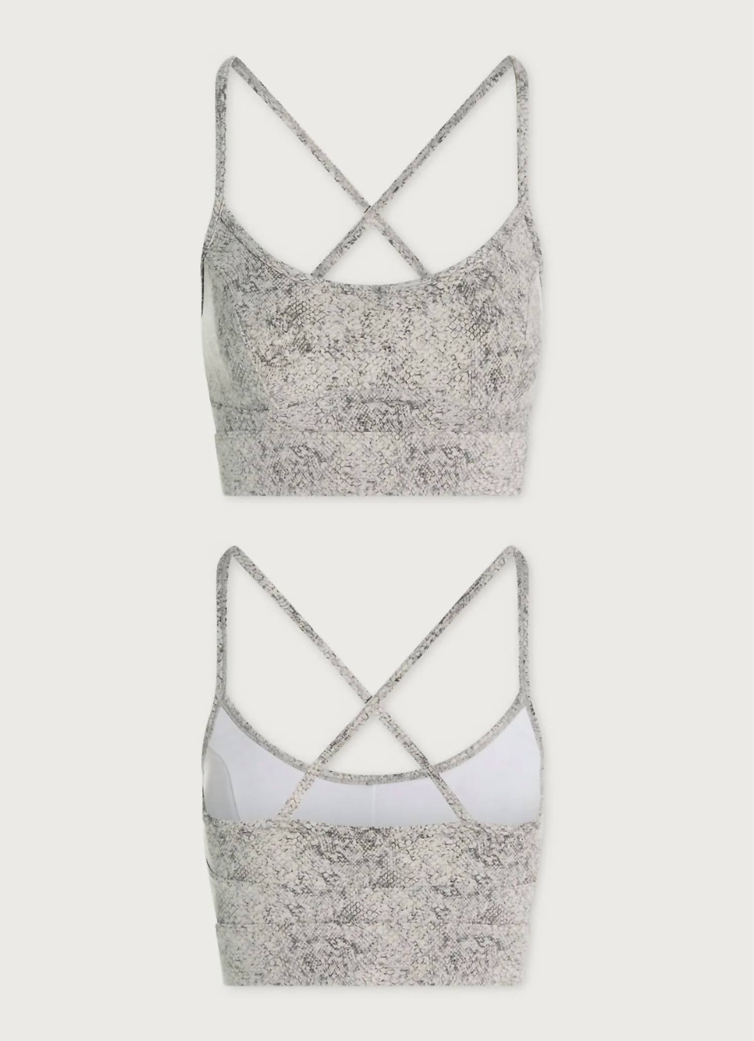 The Move Irena Bra by VARLEY in Ivory Textured Snake is the perfect blend of comfort and performance, designed for active women. Made from 75% recycled polyester and 25% elastane, this sports bra offers excellent moisture management and breathability in a buttery soft, non-padded design. Care: Machine wash cool with like colors, do not bleach; hang or lay flat to dry. Pair it with matching pants available in the same luxurious fabric for a complete workout ensemble.