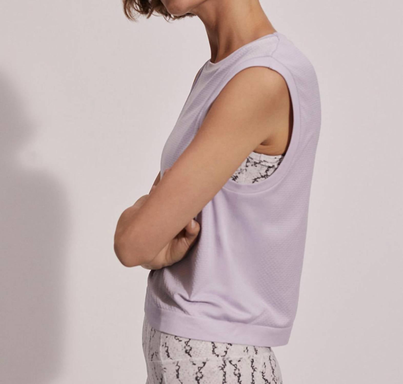 Cut to a versatile cropped silhouette. With dropped armholes and subtle textured perforation, the breathable, lightweight design. 100% Polyamide. Machine wash cool on gentle cycle, do not bleach, do not tumble dry, do not iron, do not dry clean, remove promptly from washer.