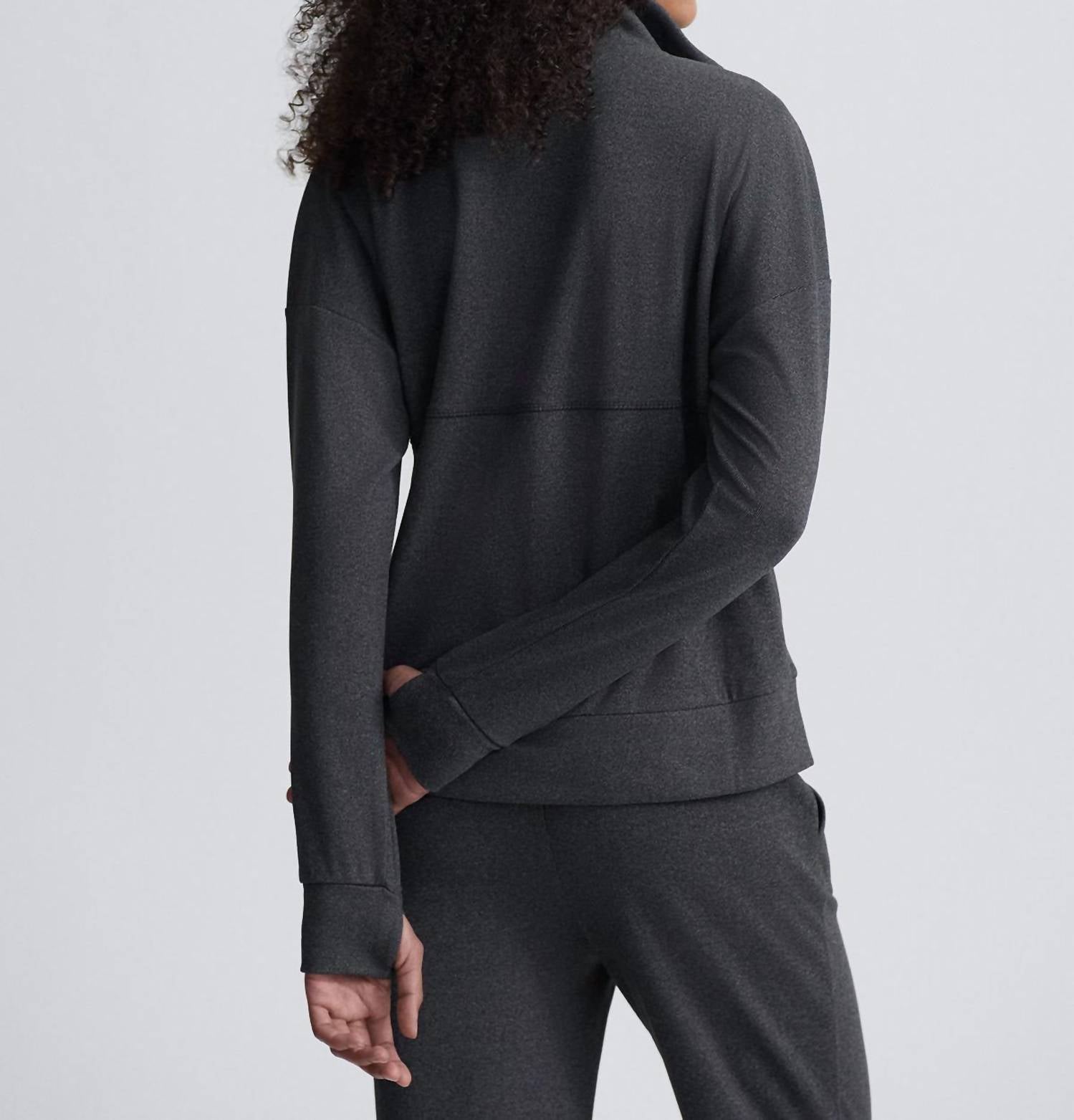 Introducing the Rozanna Zip Through Jacket by VARLEY, a perfect blend of style and function in Black Marl. This women's casual jacket features long sleeves and is crafted from warm, brushed rib polyester with a solid pattern. Designed with a practical zip closure, it includes essential hand pockets and a mockneck. For easy care, this jacket is machine washable and should be line dried.