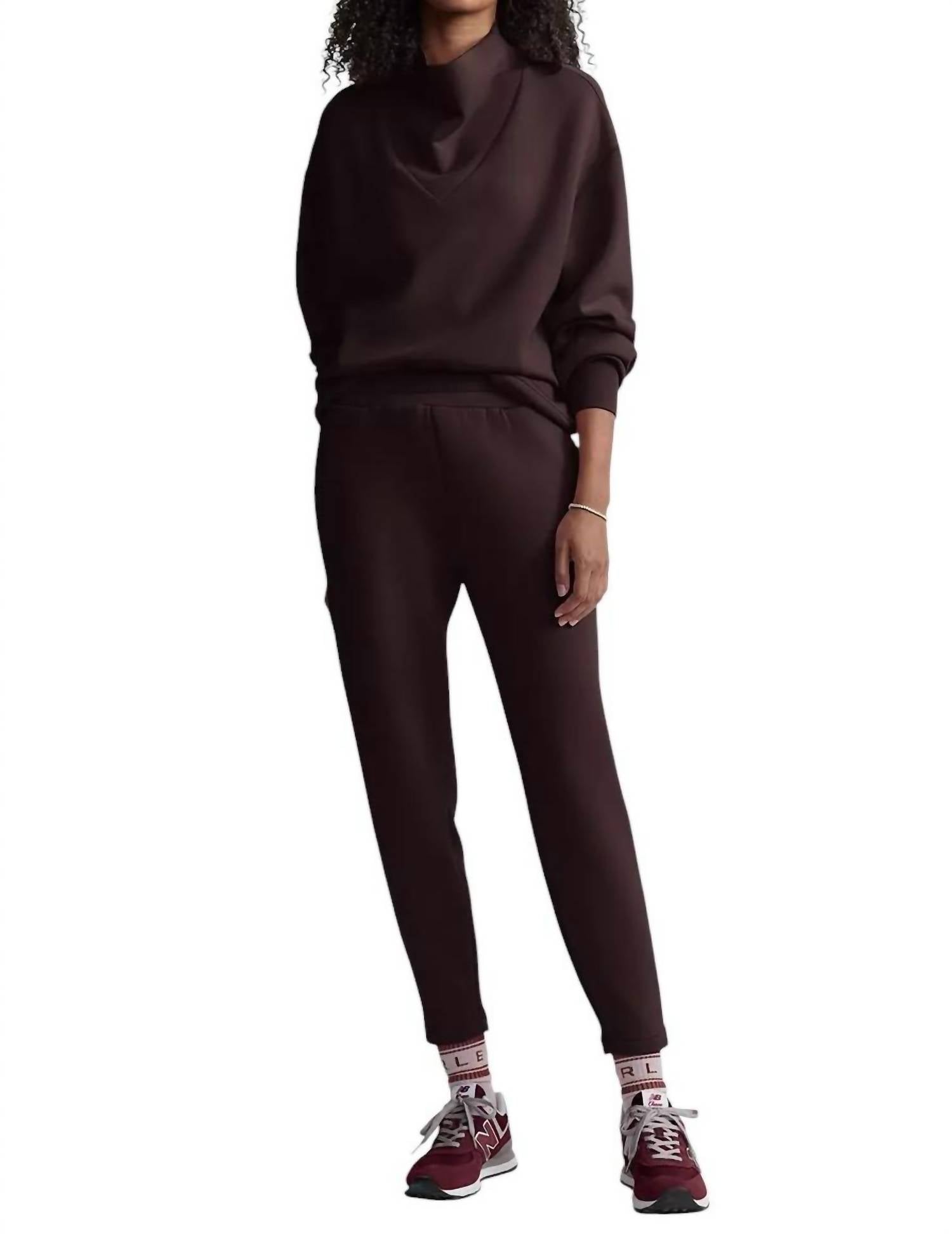 These pants are cut for a slim, tailored fit with an elastic waistband and concealed zip cuffs. Made from 72% viscose, 23% polyester, and 5% elastane, they have a rise of 11.4 inches. Machine wash cool.
