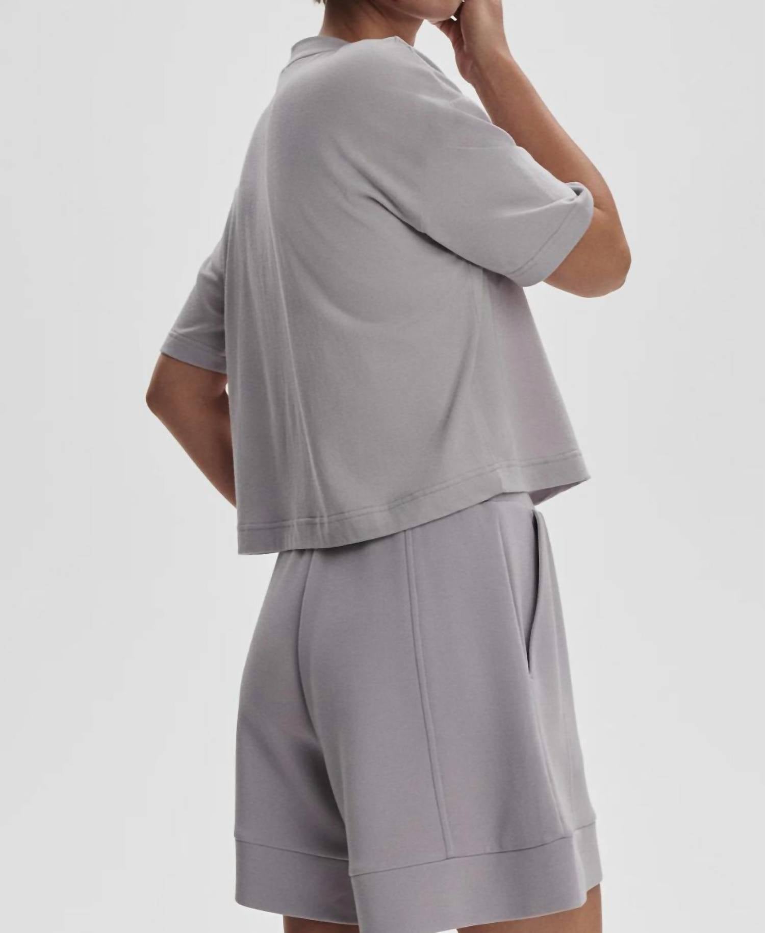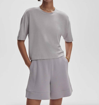 Embrace comfort and style with the Venice Easy Short Sleeve Top by VARLEY in the serene Raindrops color. Crafted from soft Modal Jersey, this tee features a classic crewneck and a chic waistband length perfect for easy tuck-in styles. With a pull on closure and a relaxed cropped fit, it's designed for effortless wear. This tee elevates your wardrobe with its timeless design, making it a versatile addition to any outfit.