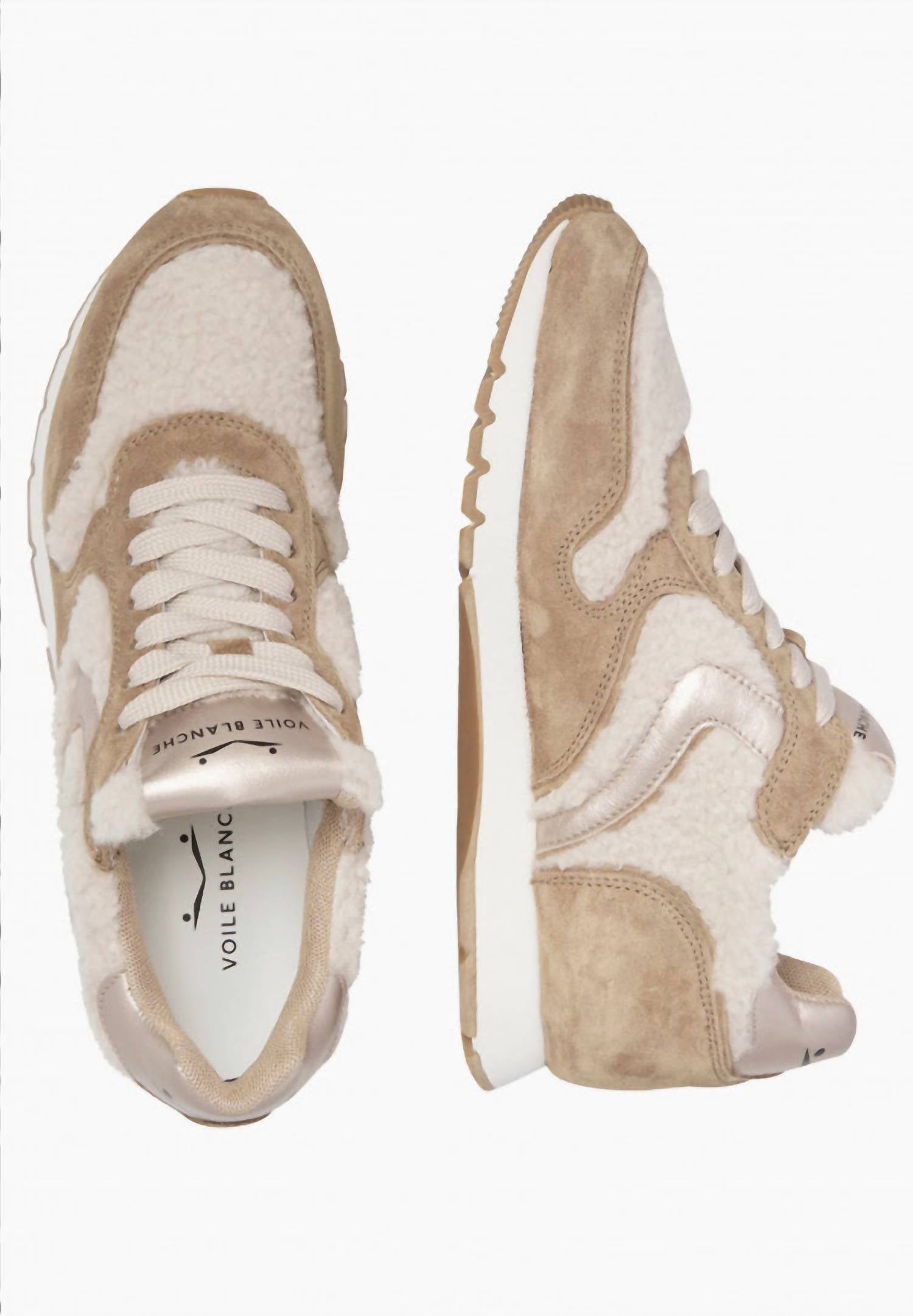 Step up your sneaker collection with the Women's Julia Suede/Metallic Fur Sneakers by Voile Blanche, available in a chic brown/beige color. These sneakers boast a luxurious leather upper paired with wool for added warmth and style. The durable rubber sole provides reliable traction, while the heat-insulating insole ensures comfort on every step. Ideal for those who refuse to compromise on style or comfort.