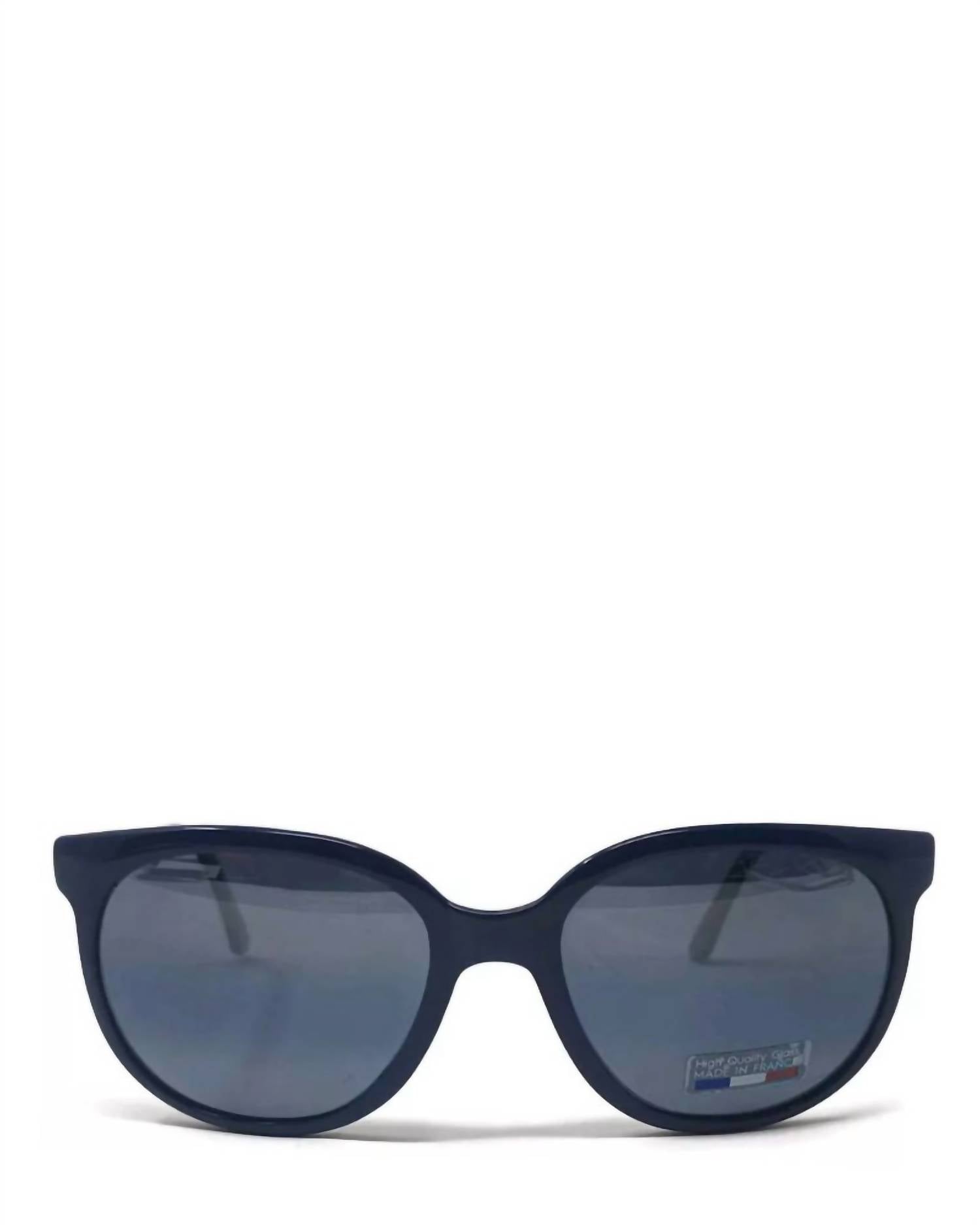 Sunglasses feature a unique butterfly-shaped full-rim frame with sturdy plastic construction and polarized blue polycarbonate lenses, providing 100% UV protection and a 3 protection index for strong sunlight. With a lens width of 55mm and a nose bridge width of 19mm, they ensure a comfortable fit and effective side protection with their slightly curved base 6 lenses. Additionally, they are prescription adaptable and showcase engraved branding on the temples for a touch of elegance.