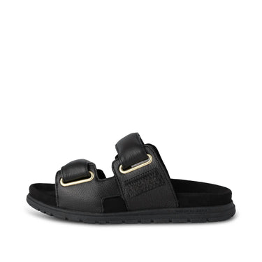 Classicly cute and all-day-wearable. We love this sandal. Introducing the Woden Lisa Leather Sandal, a chic piece crafted from LWG-certified leather for a touch of luxury. These monochromatic sandals boast an open toe and flat heel, secured with two adjustable chunky buckle straps. Designed for style and comfort, they feature an anatomical footbed, a lightweight PU midsole, and a rubber outsole, containing 10% recycled rubber. Perfect for summer vacations, this minimalist sandal reflects casual elegance with Woden's natural soft technolog.